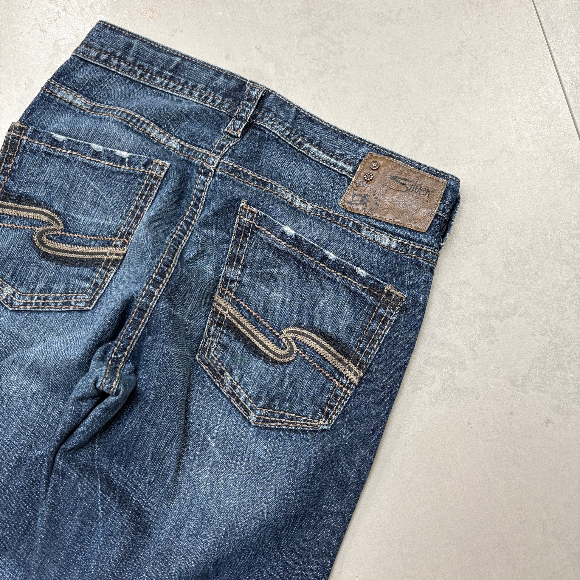Vintage Silver Jeans Embroidered Hip Hop Blue Straight Jeans - 32