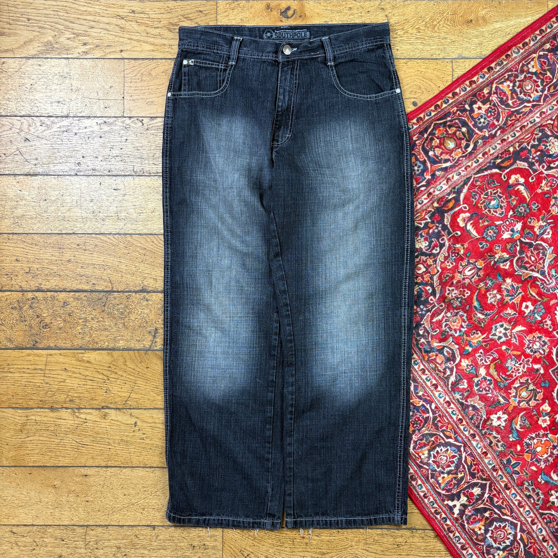 Contrast stitch true religion JNCO Coogi Southpole akademics Fubu skate rocawear embroidered denim jeans japanese denim y2k skatewear surfwear