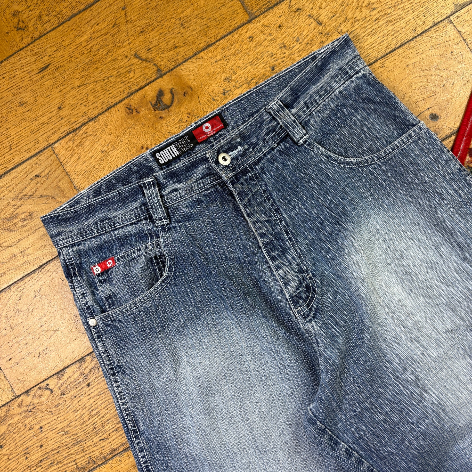 Vintage Southpole Blue Embroidered Y2K Hip Hop Baggy Jeans - 34