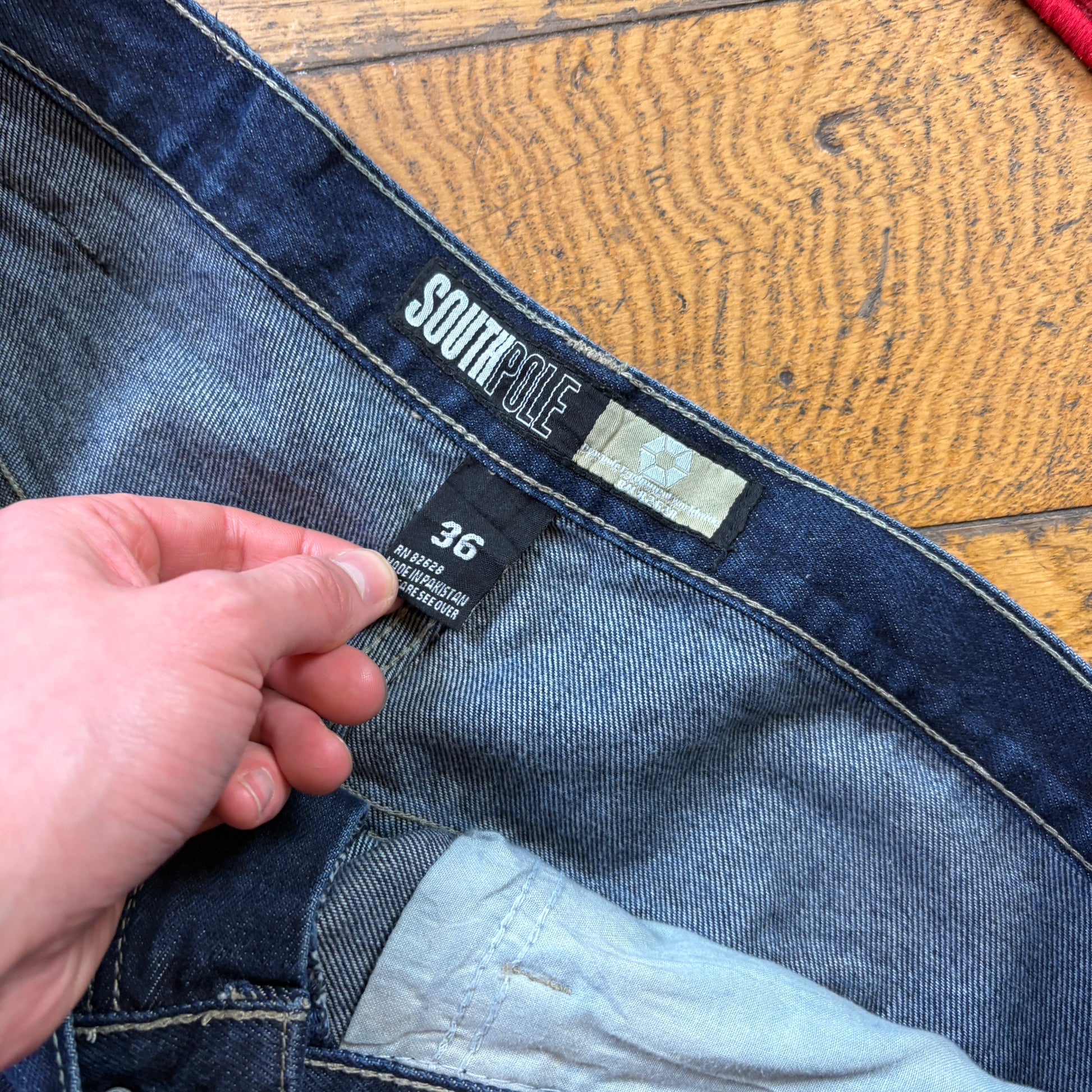 Vintage Southpole Blue Embroidered Y2K Hip Hop Baggy Jeans - 36