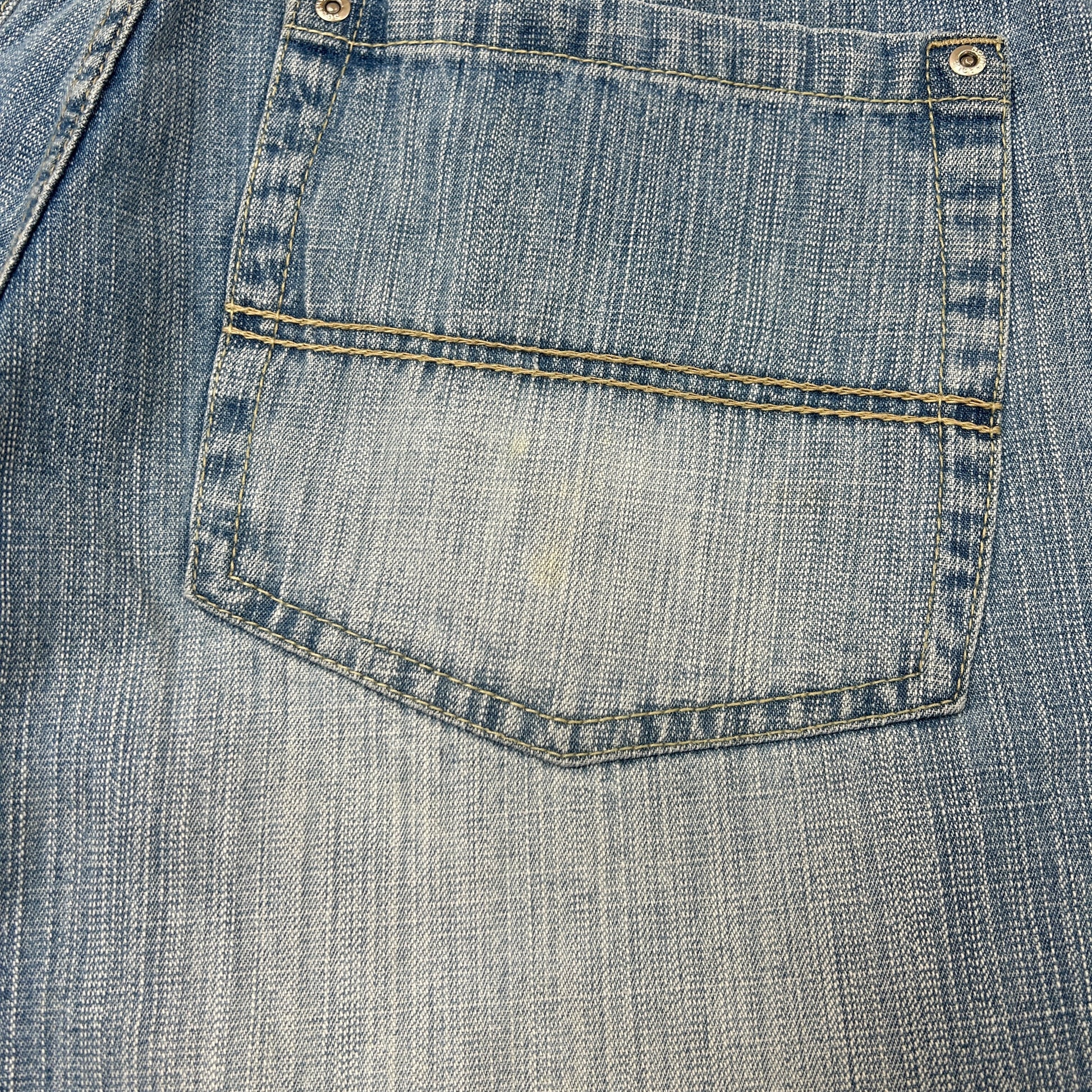 Contrast stitch true religion JNCO Coogi Southpole akademics Fubu skate rocawear embroidered denim jeans jorts skatewear surfwear carpenter cargo japanese denim