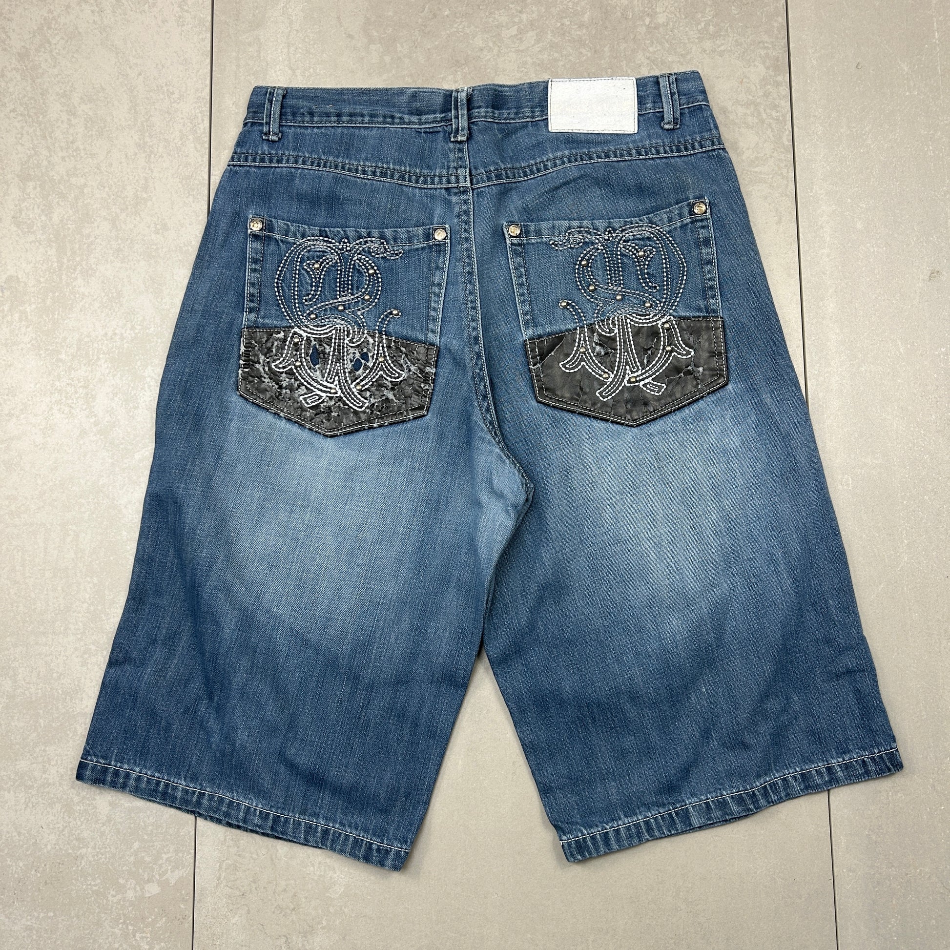 Contrast stitch true religion JNCO Coogi Southpole akademics Fubu skate rocawear embroidered denim jeans jorts skatewear surfwear carpenter cargo japanese denim