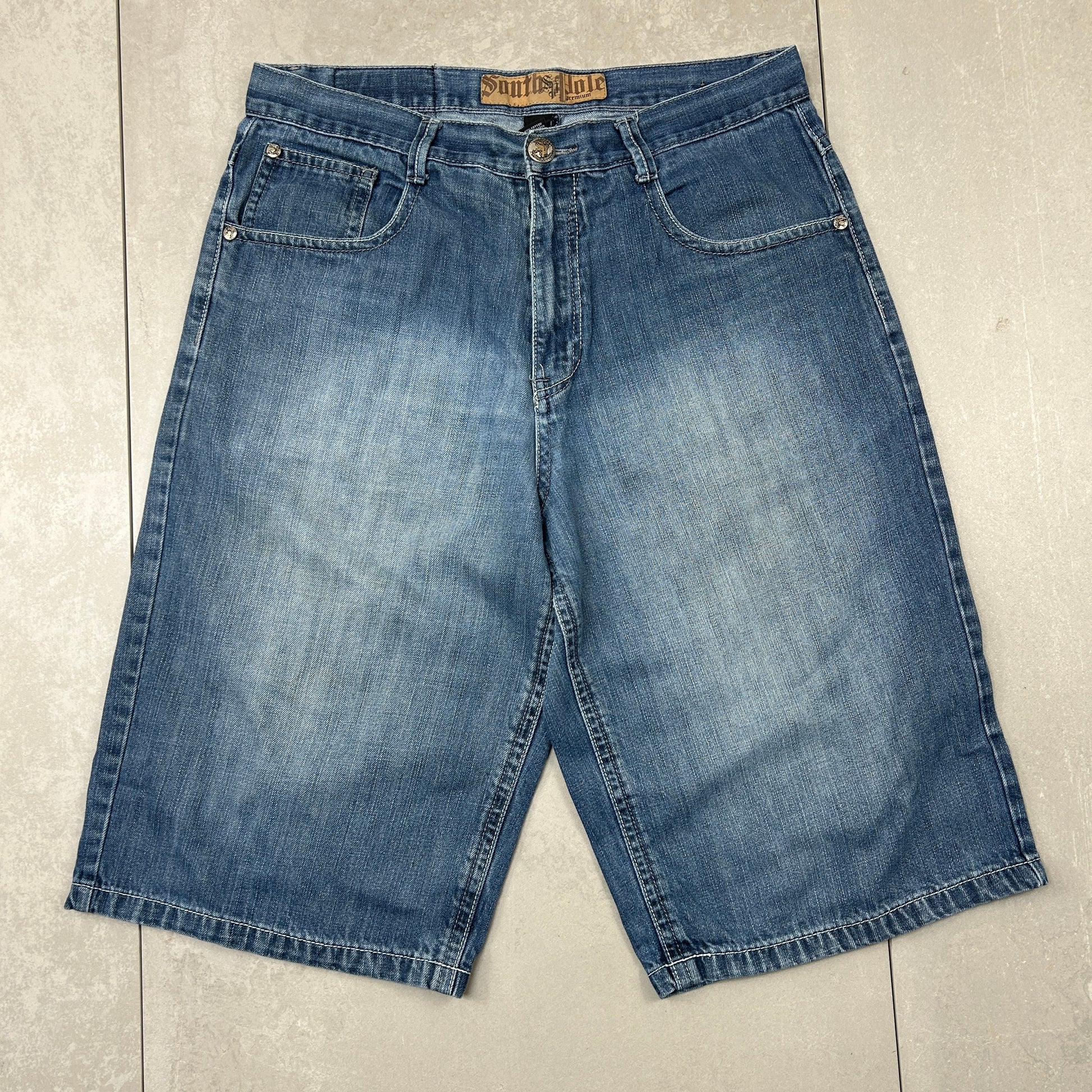 Vintage Southpole Embroidered Hip Hop Baggy Shorts Blue Jorts - 38