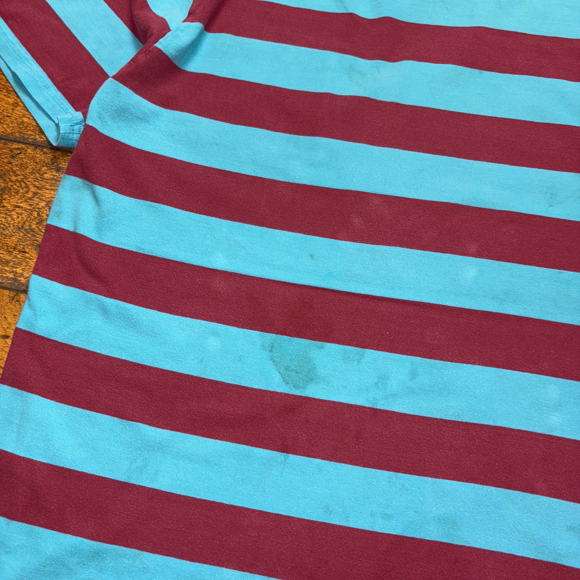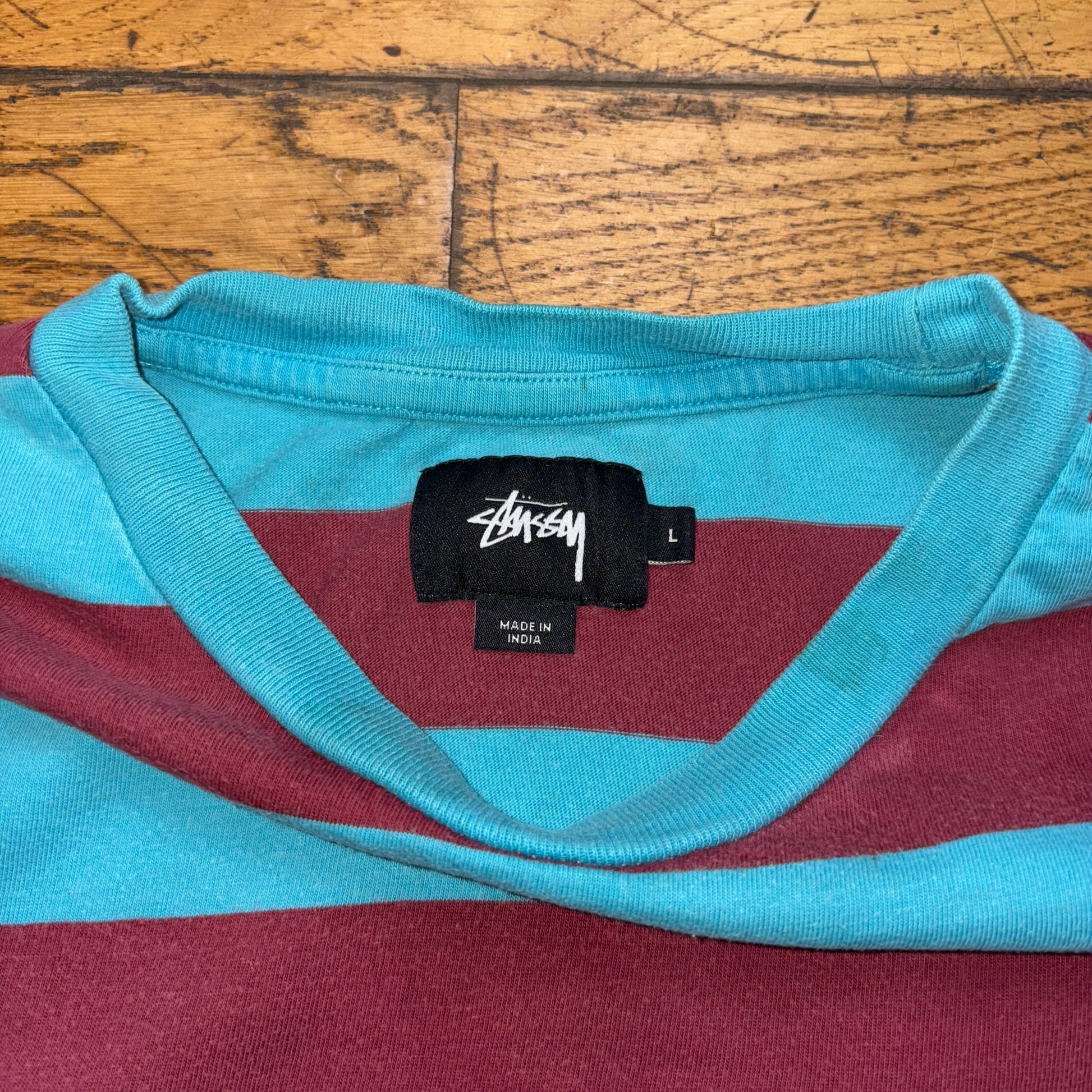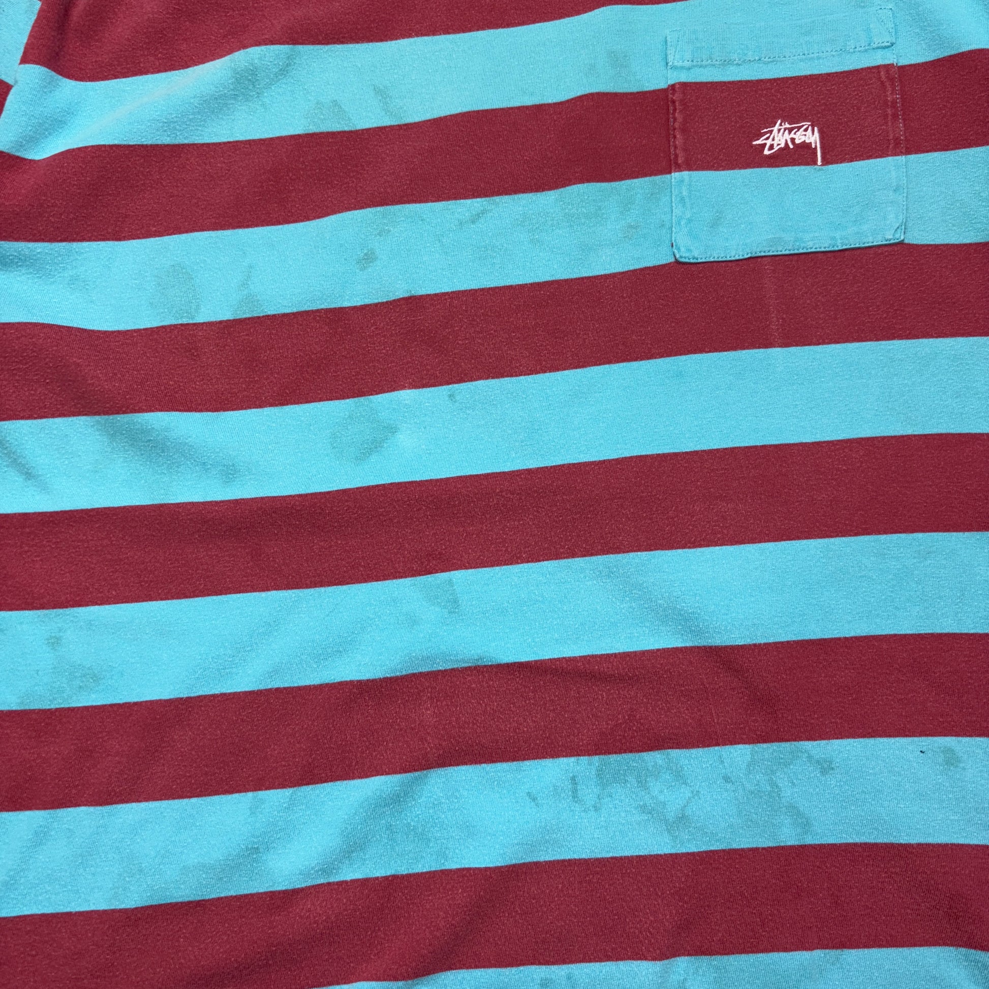 Vintage Stussy Blue Red Stripe Embroidered T-Shirt - L