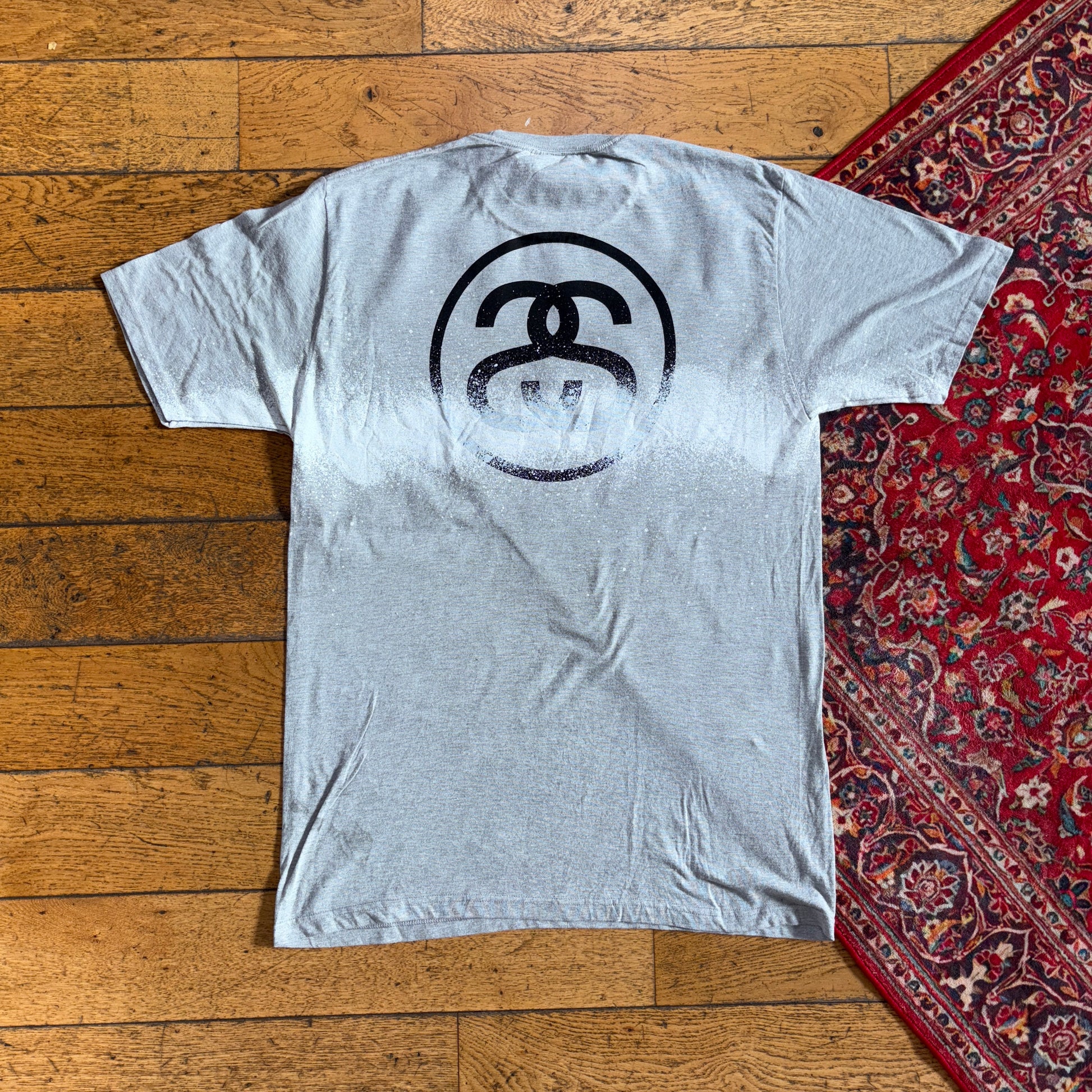 Vintage Stussy Grey Paint Graphic T-Shirt - M