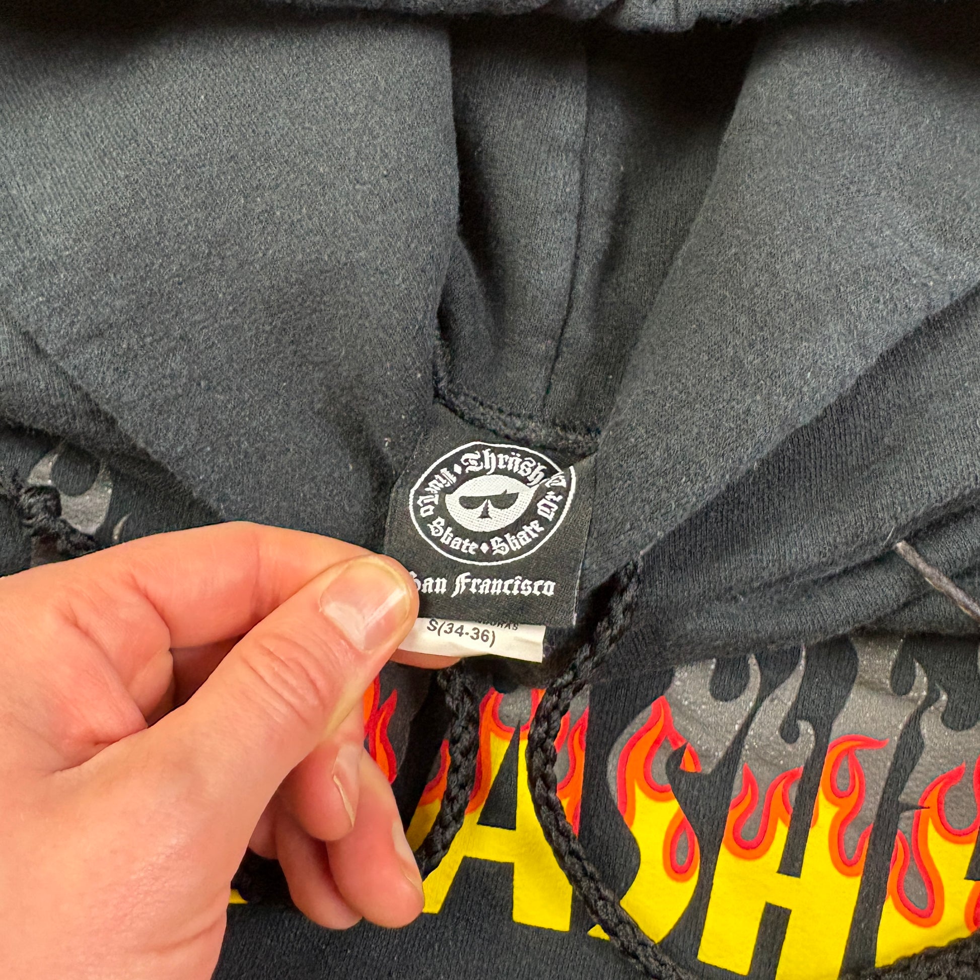 Vintage Thrasher Flames Black Hoodie Skate Sweatshirt - S