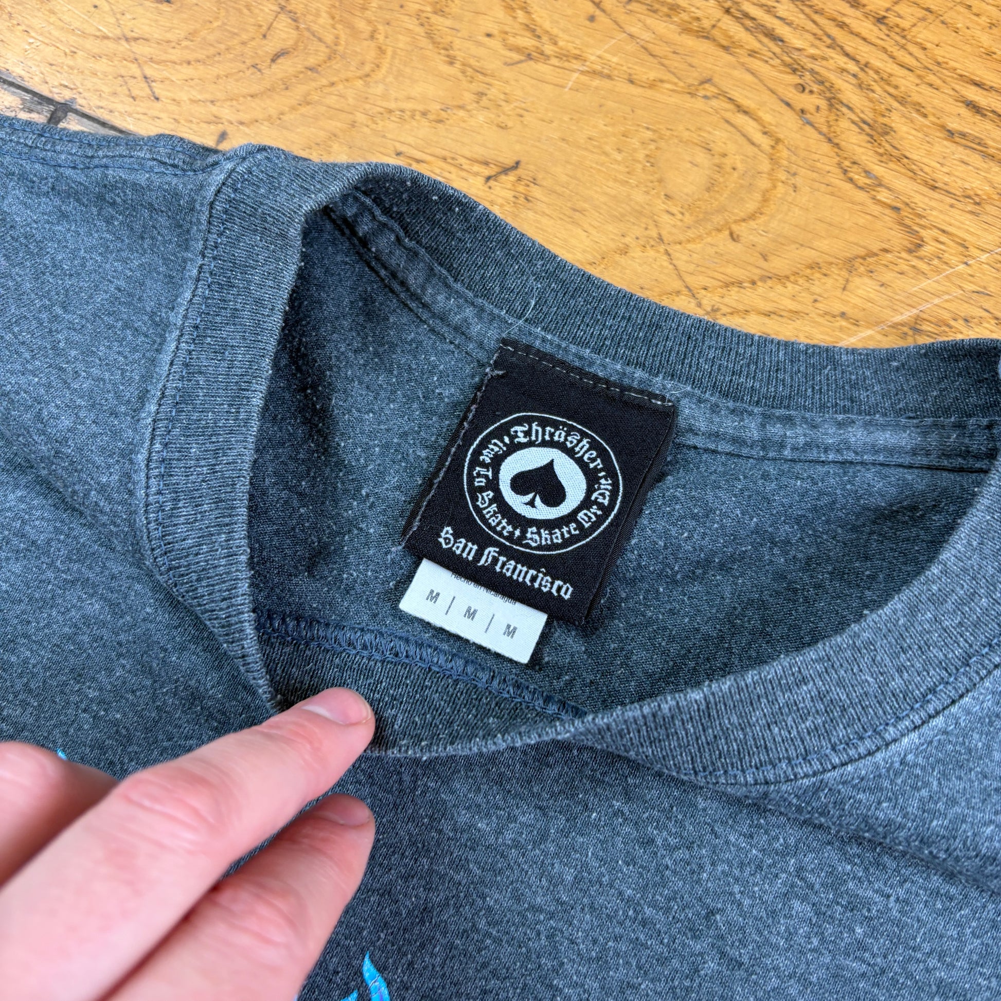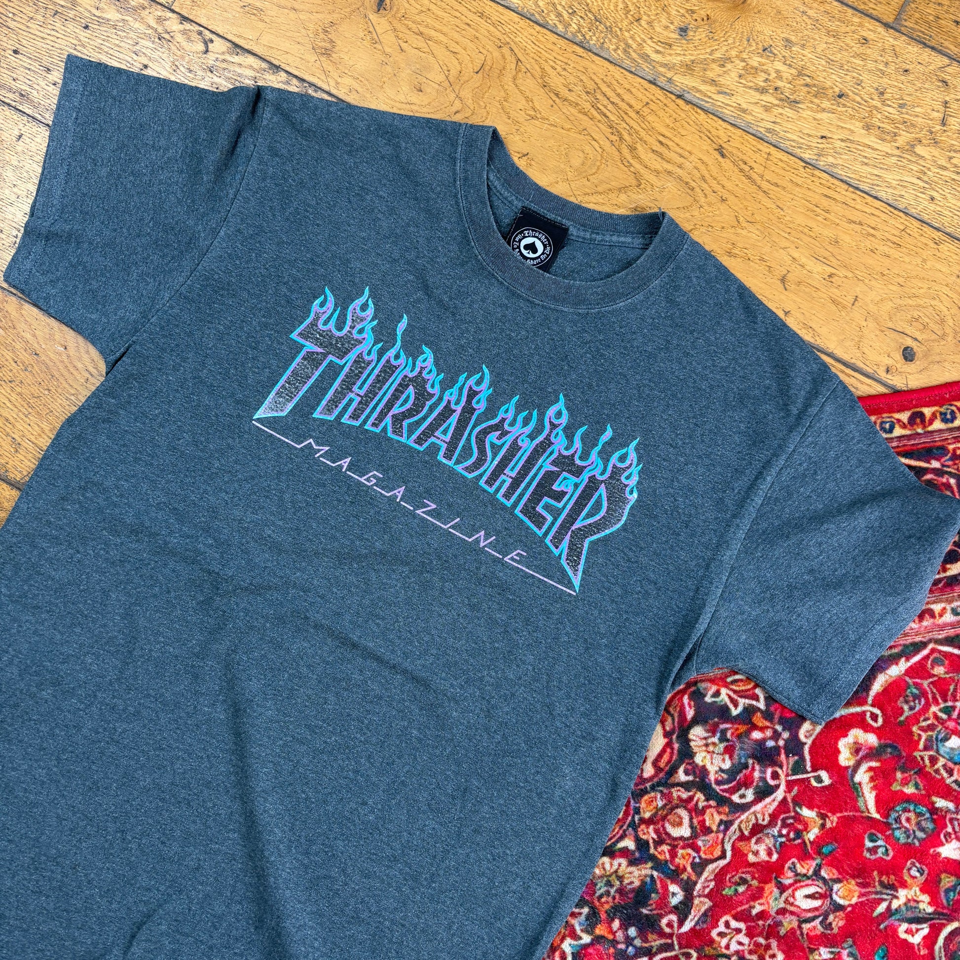 Vintage Thrasher Grey Flames Skate Graphic T-Shirt - XS