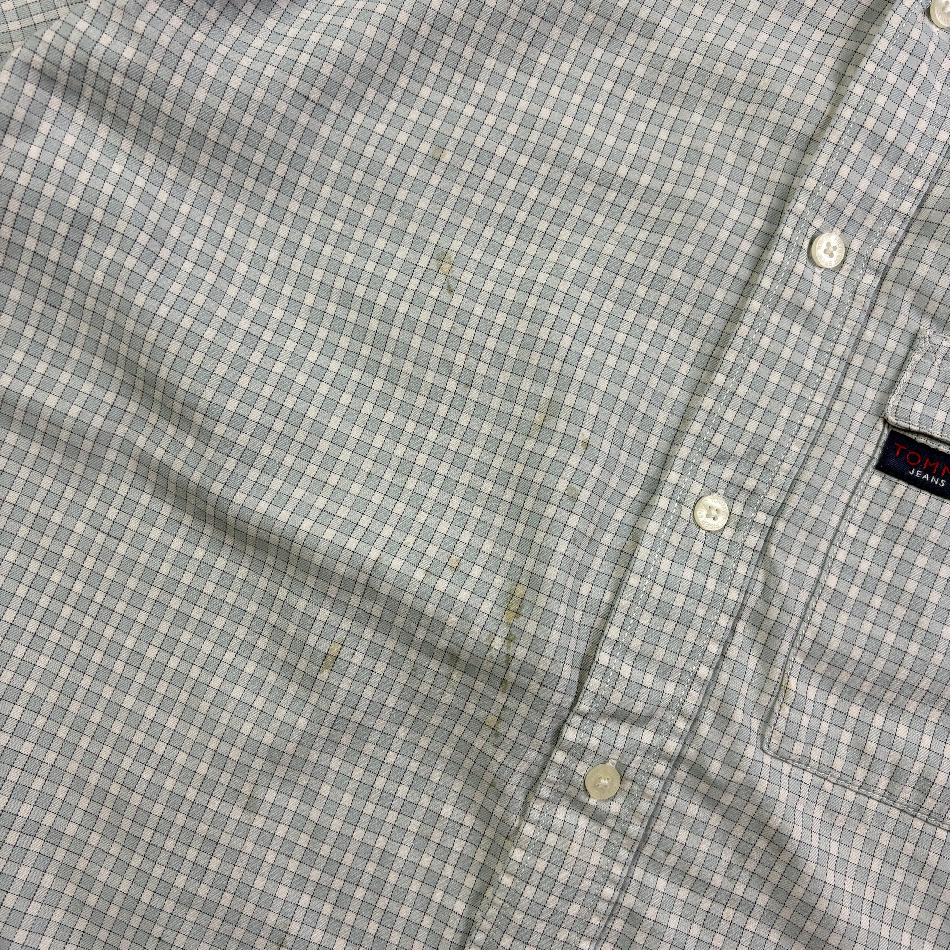 Vintage Tommy Hilfiger Blue Check Short Sleeve Embroidered Shirt - M