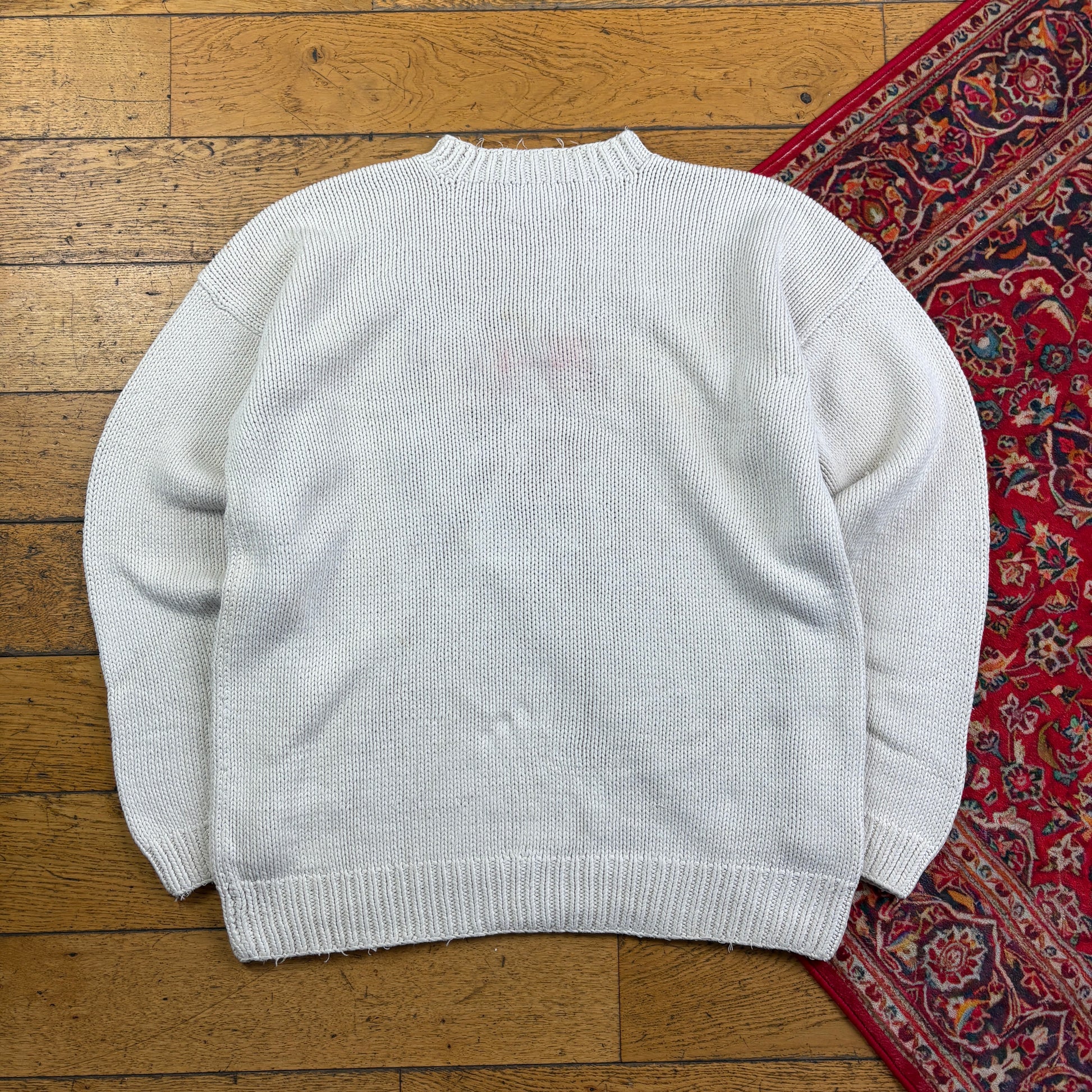 Vintage Tommy Hilfiger England Flag Cream Chunky Knit Jumper - 2XL