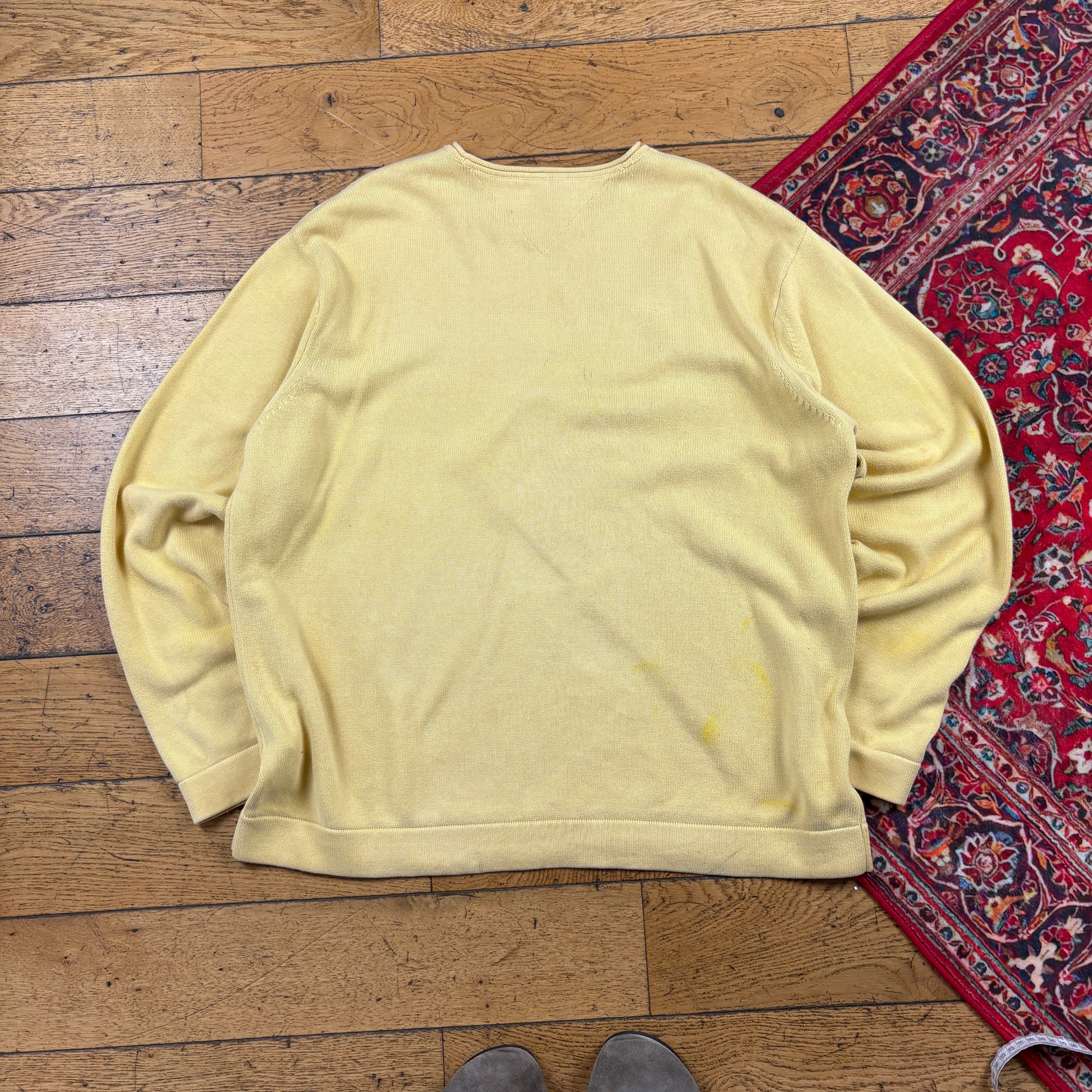 Vintage Tommy Hilfiger Yellow Embroidered Stripe Knit Jumper - XL