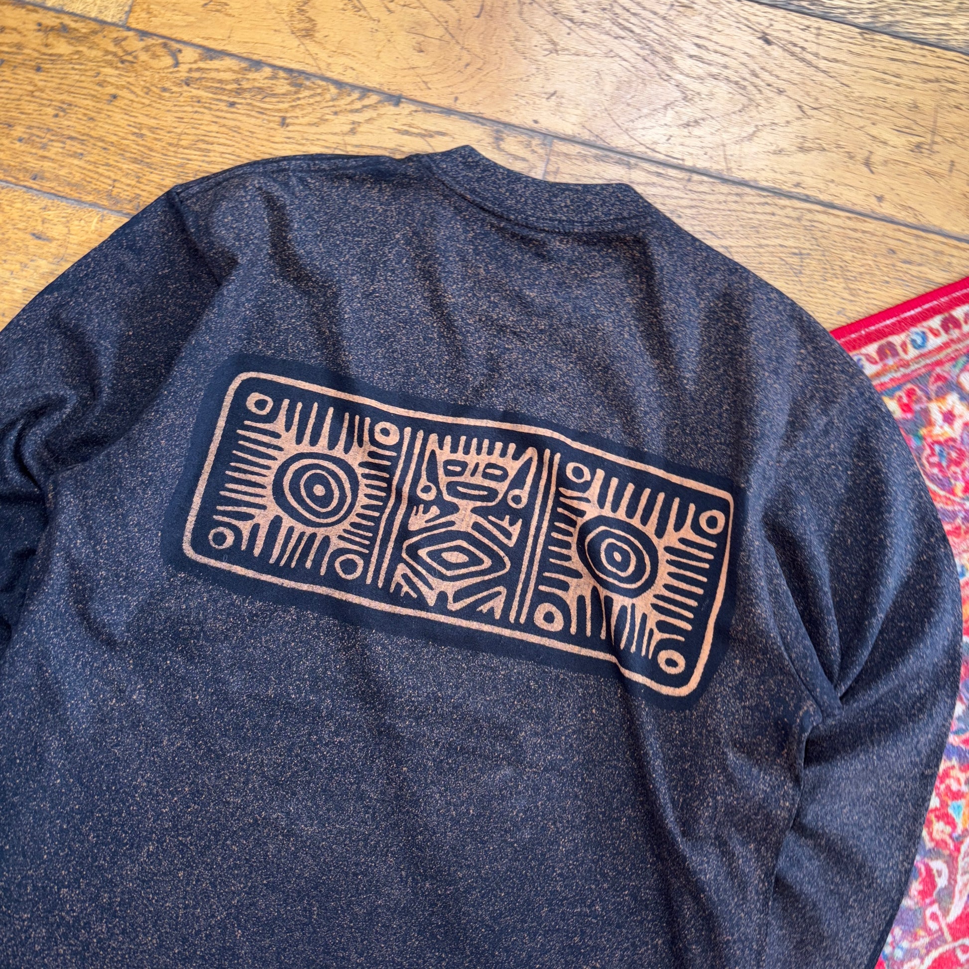 Vintage Totem Pole Black Long Sleeve Graphic T-Shirt - M