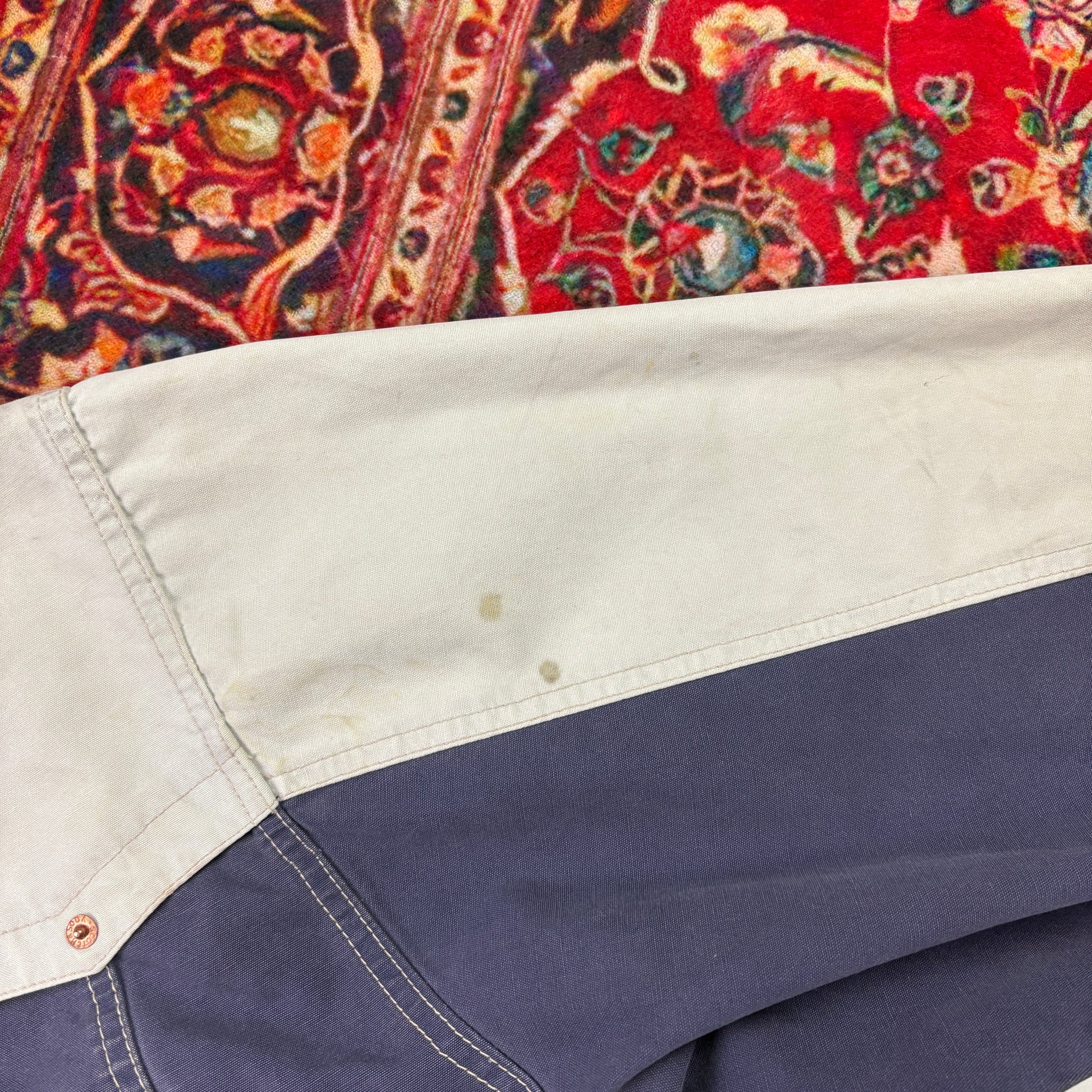 Vintage Trucker Style Cream Blue Workwear Cropped Jacket - XL