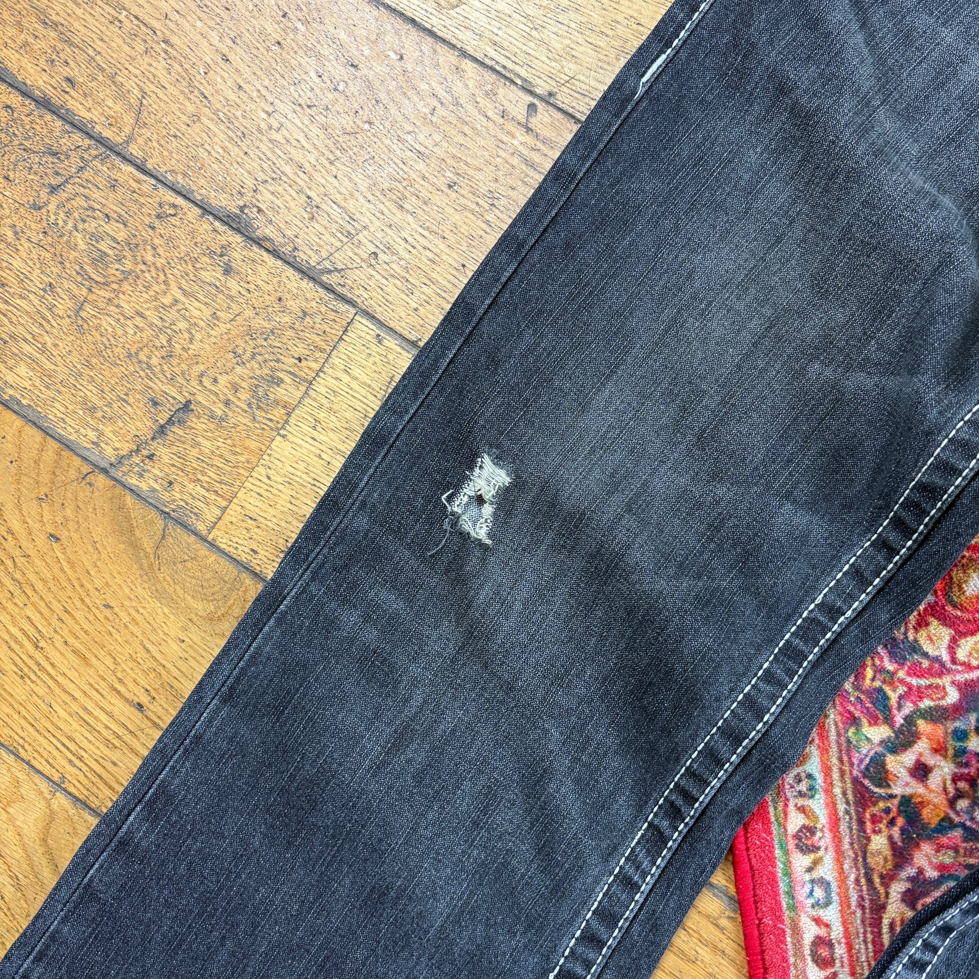 Contrast stitch true religion JNCO Coogi Southpole akademics Fubu skate rocawear embroidered denim jeans japanese denim y2k skatewear surfwear