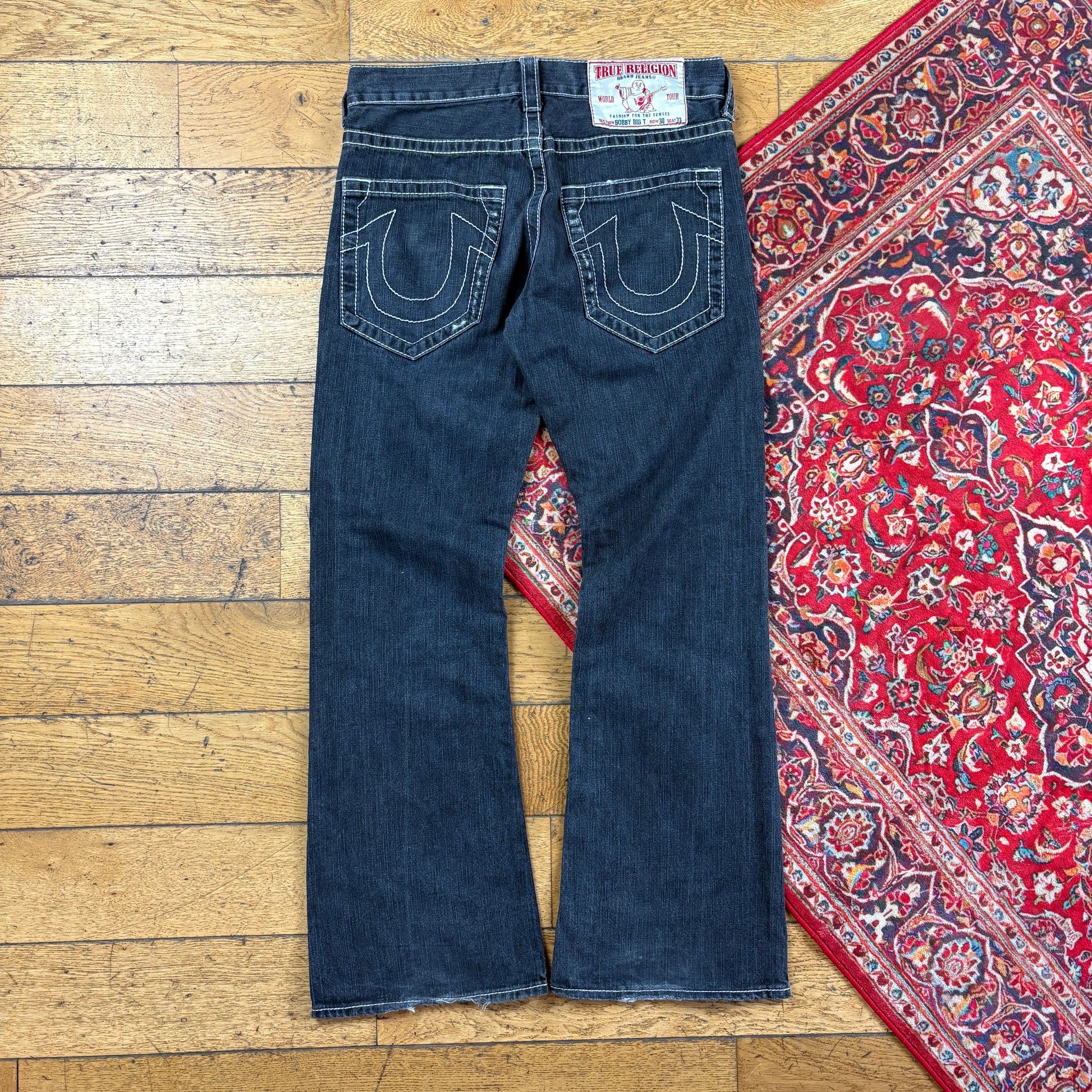 Vintage True Religion Black Embroidered Y2K Hip Hop Flared Bootcut Jeans - 34
