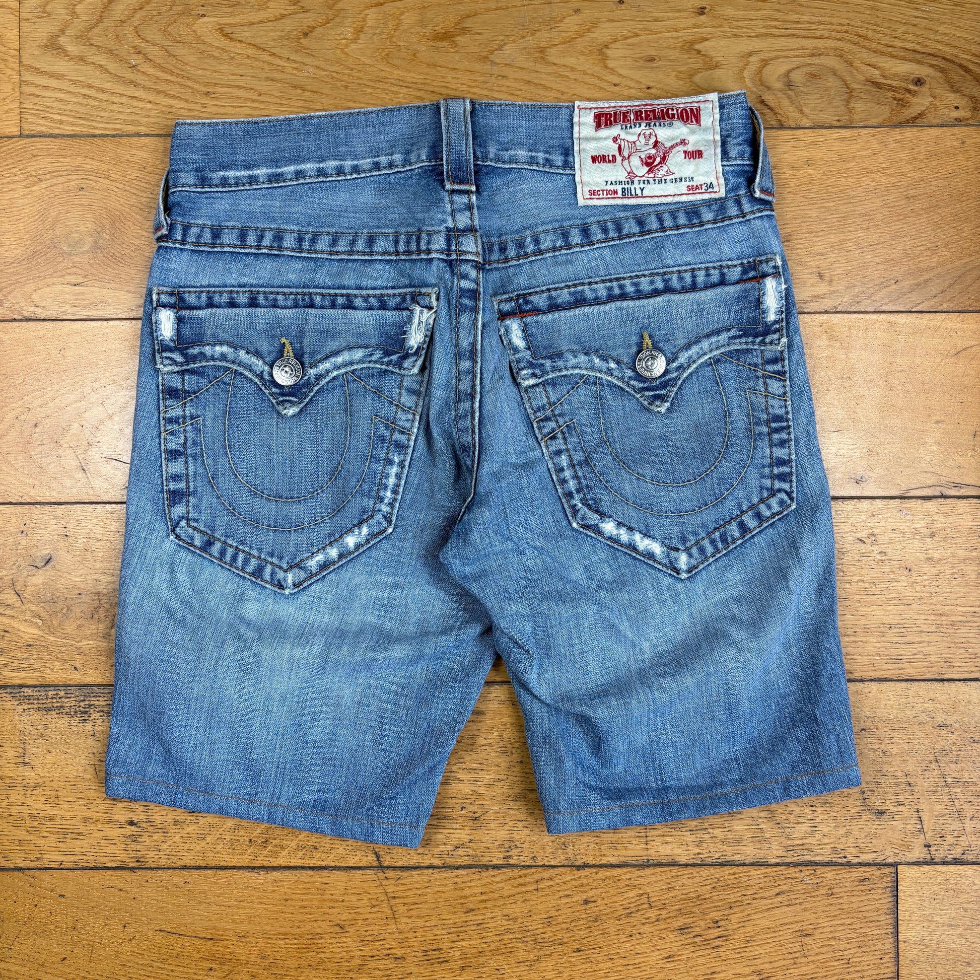 Vintage True Religion Blue Embroidered Y2K Shorts Jorts - 29