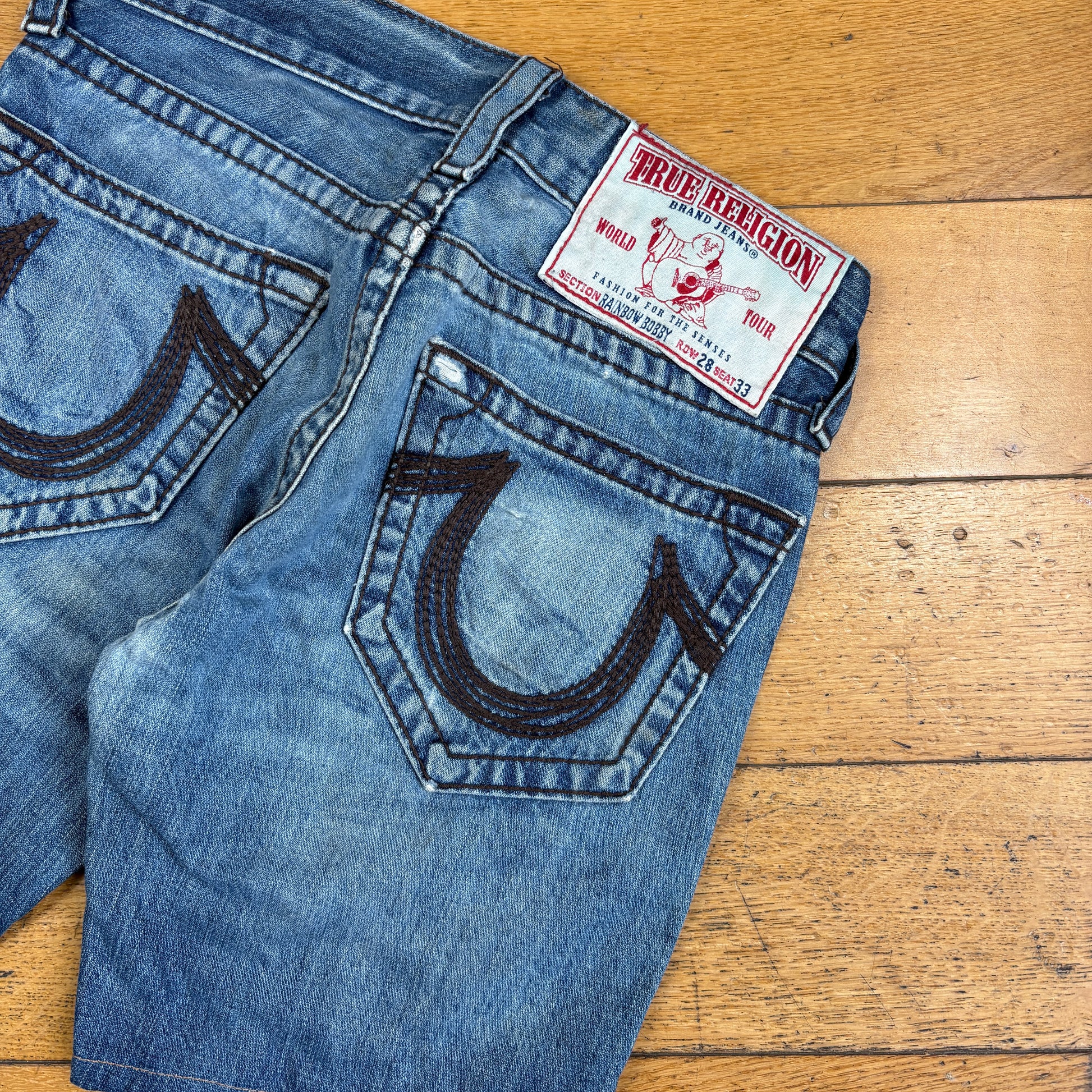Vintage True Religion Blue Embroidered Y2K Shorts Jorts - 32