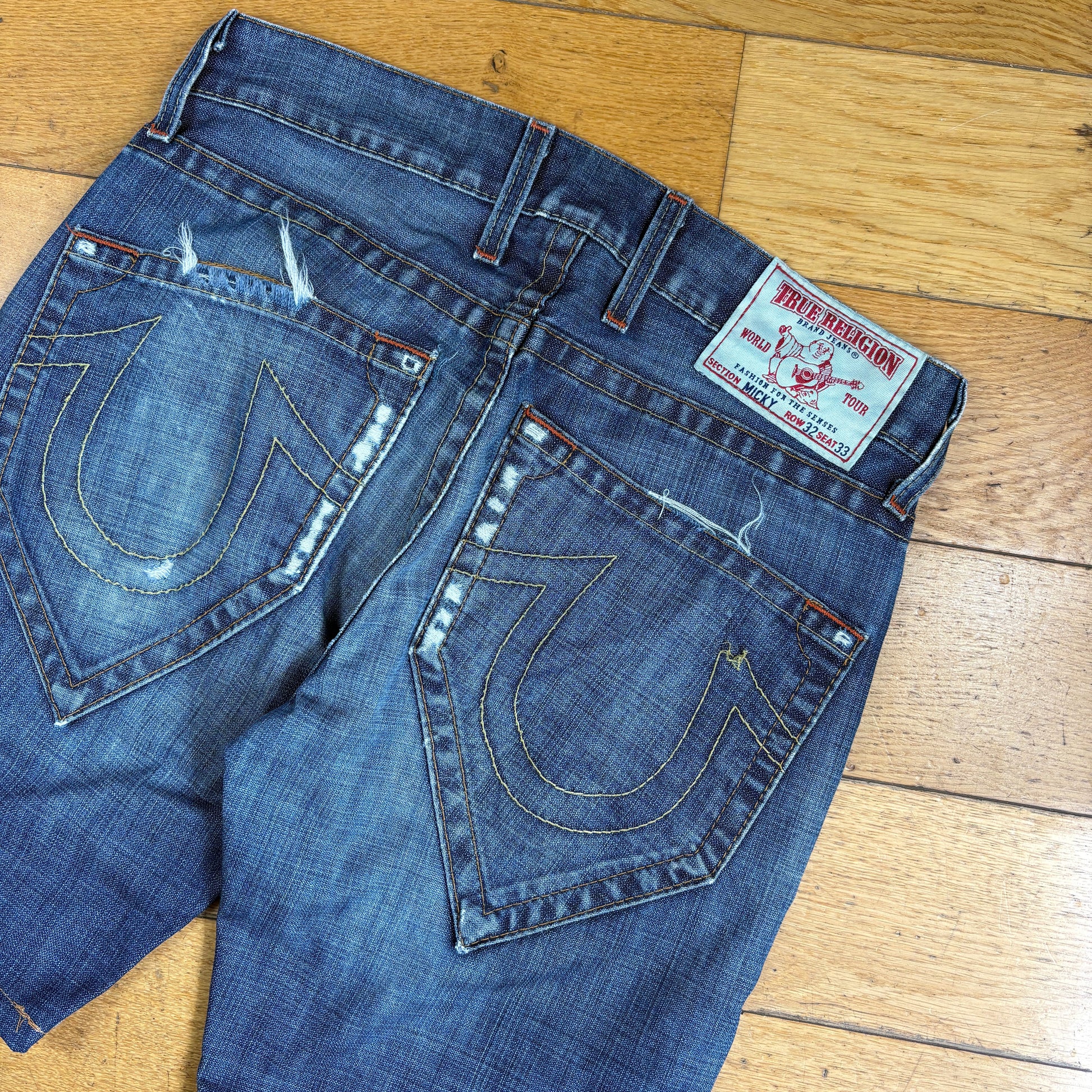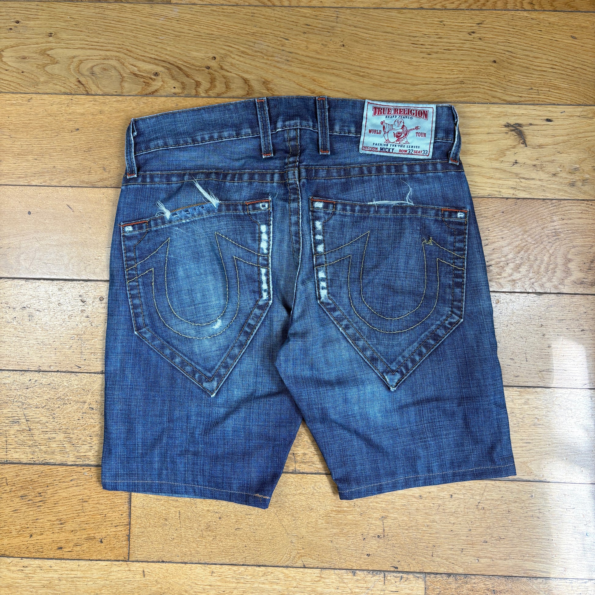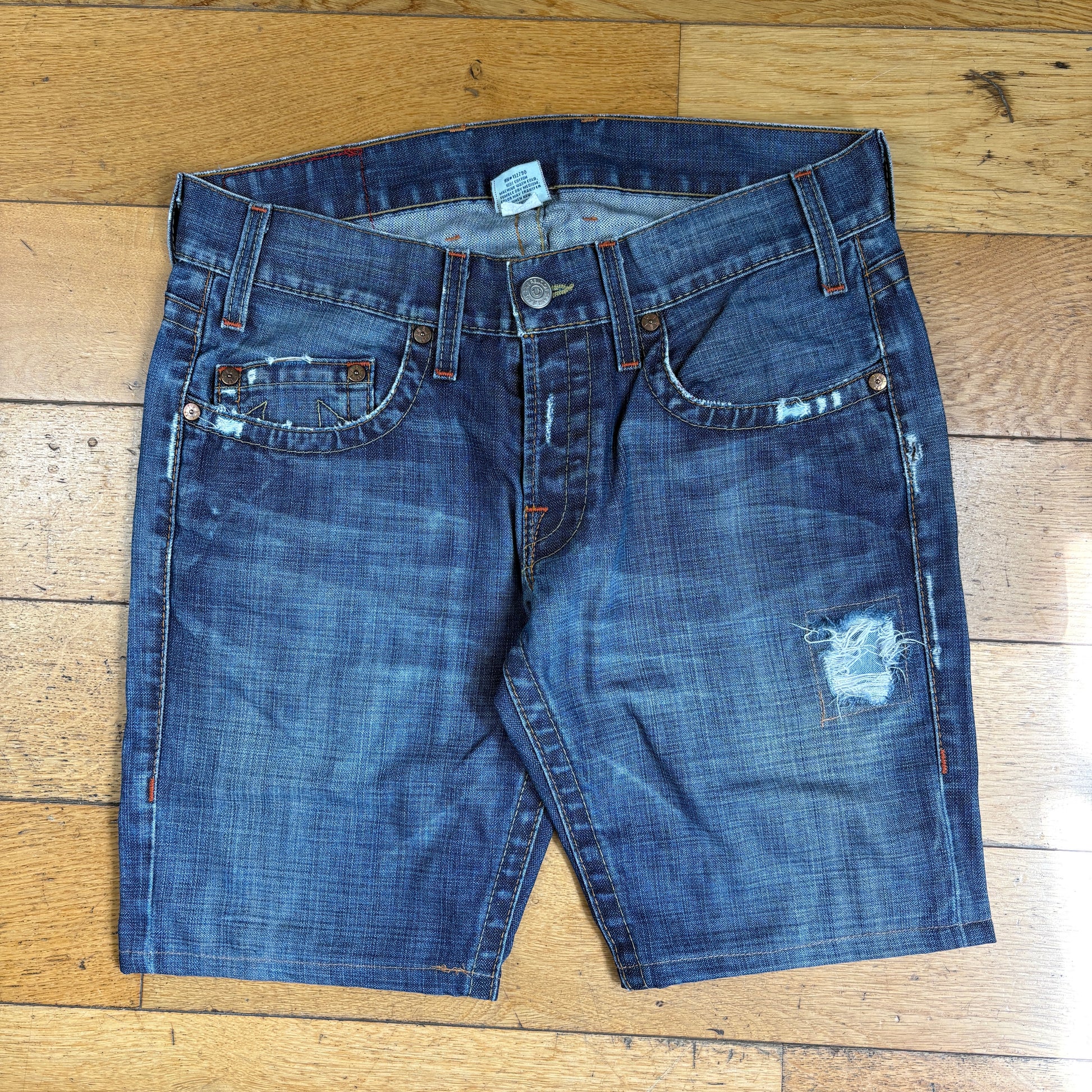 Vintage True Religion Blue Embroidered Y2K Shorts Jorts - 36
