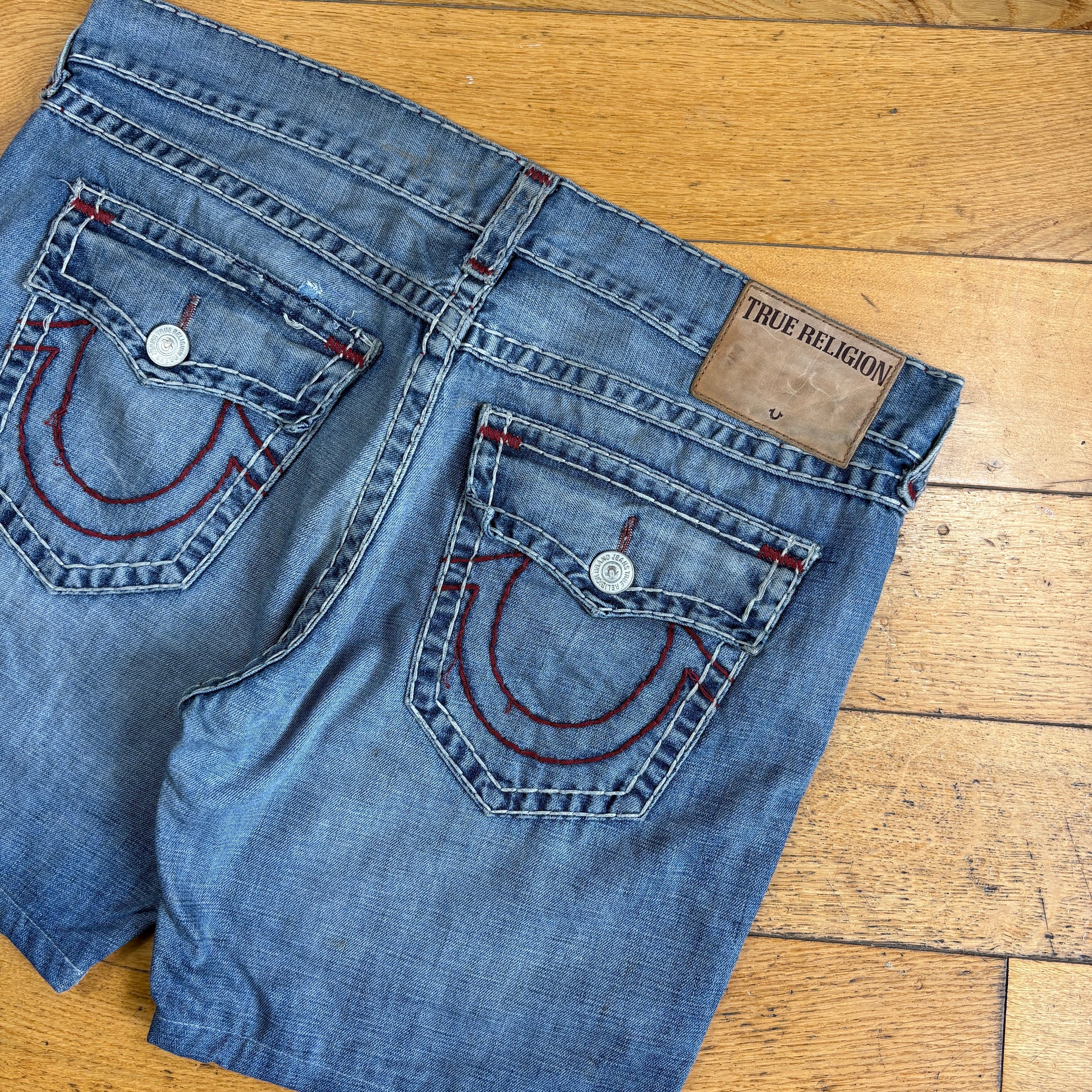 Vintage True Religion Blue Embroidered Y2K Shorts Jorts - 42