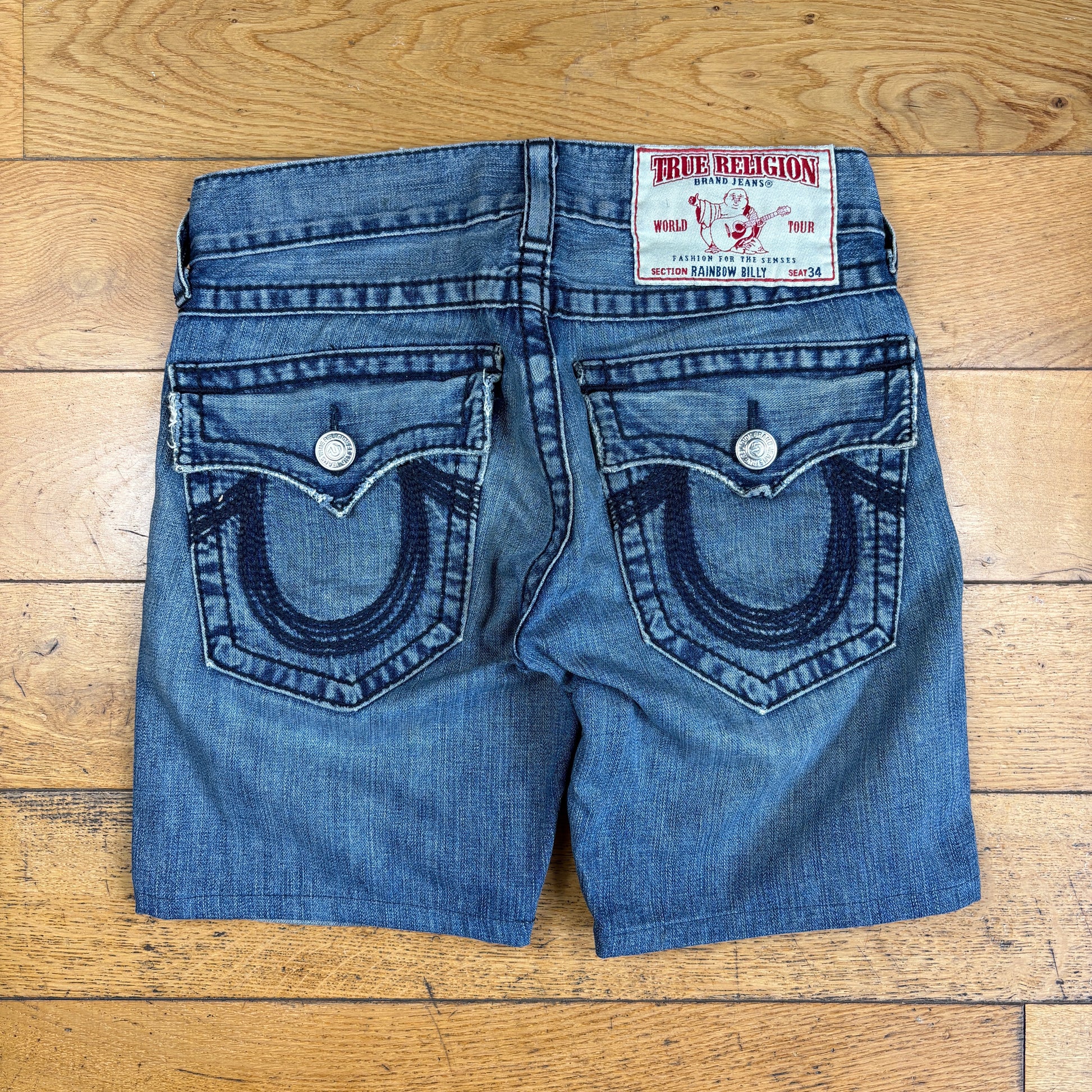 Vintage True Religion Blue Embroidered Y2K Shorts Jorts - 32