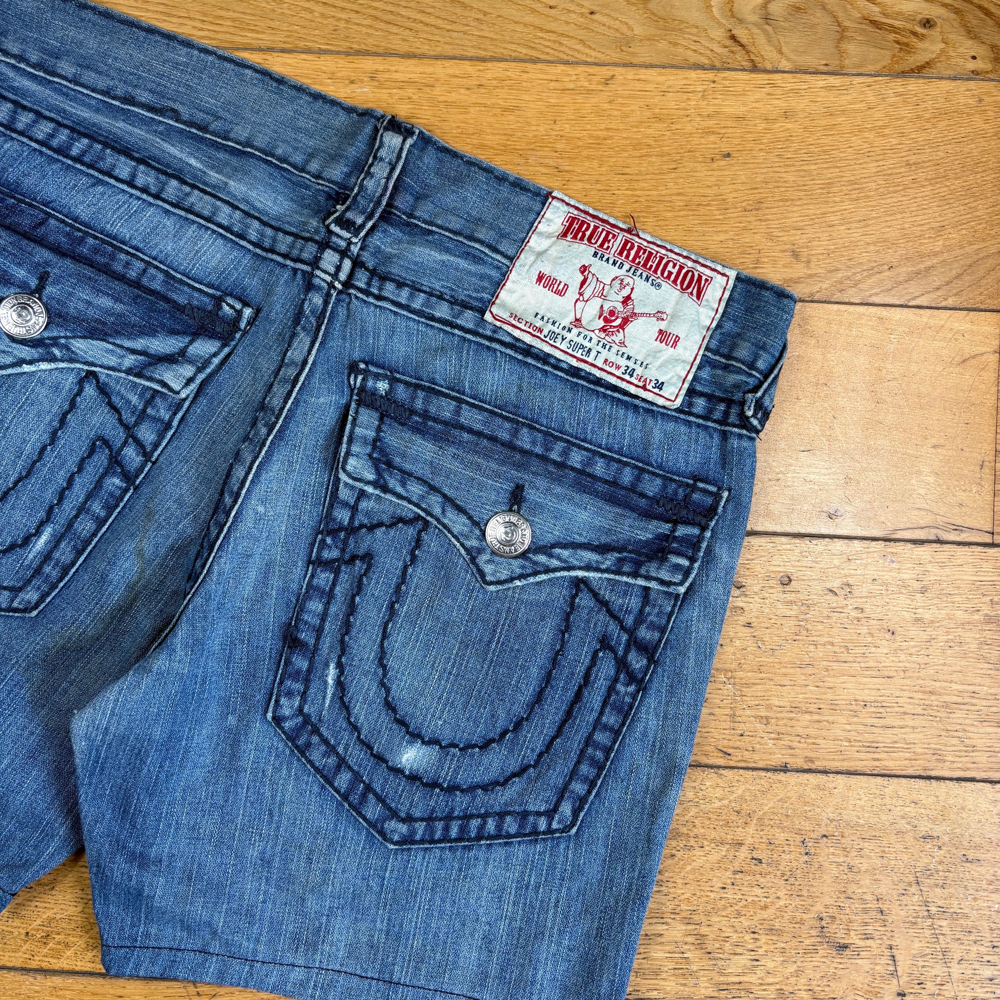 Vintage True Religion Blue Embroidered Y2K Shorts Jorts - 36