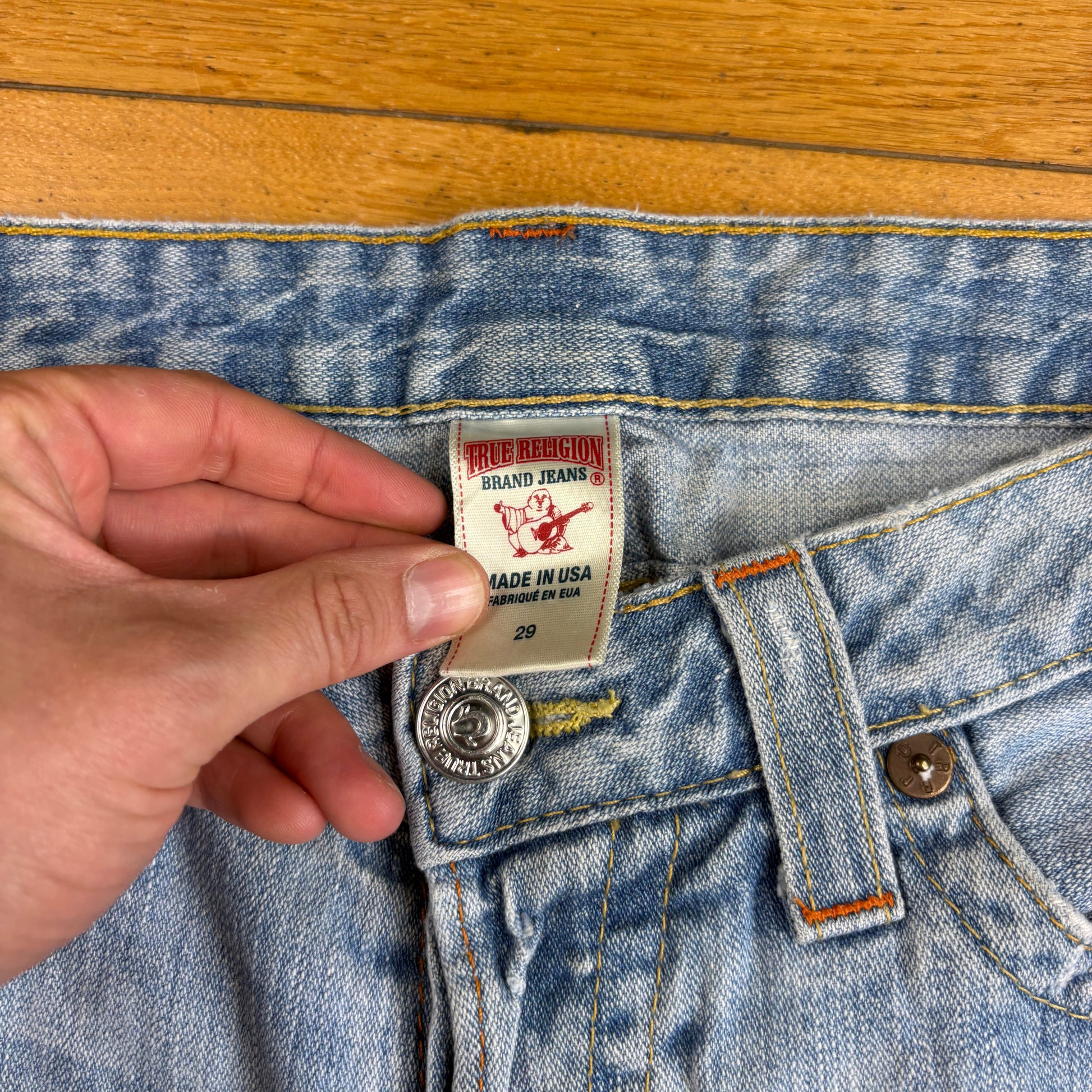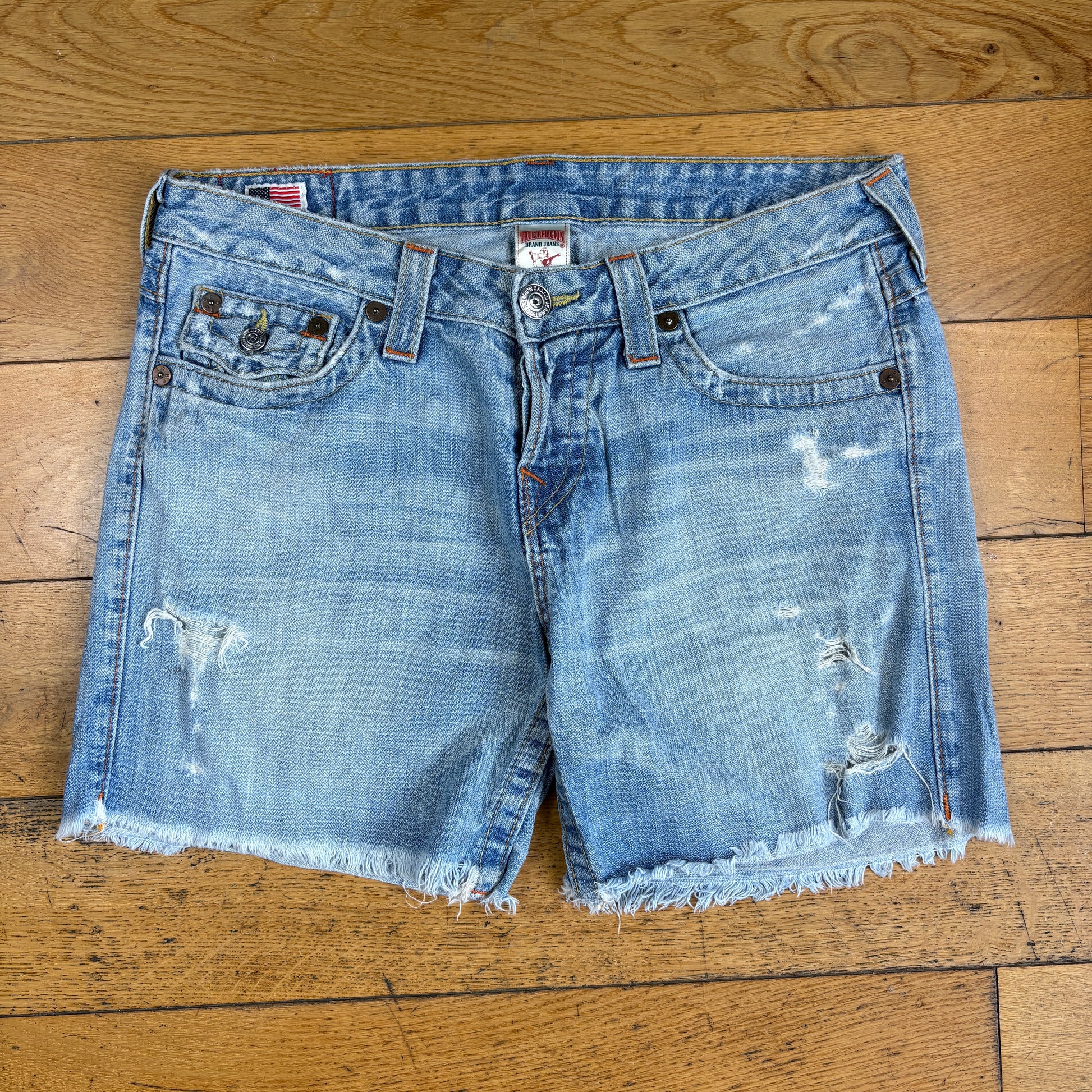 Vintage True Religion Blue Embroidered Y2K Shorts Jorts - 34