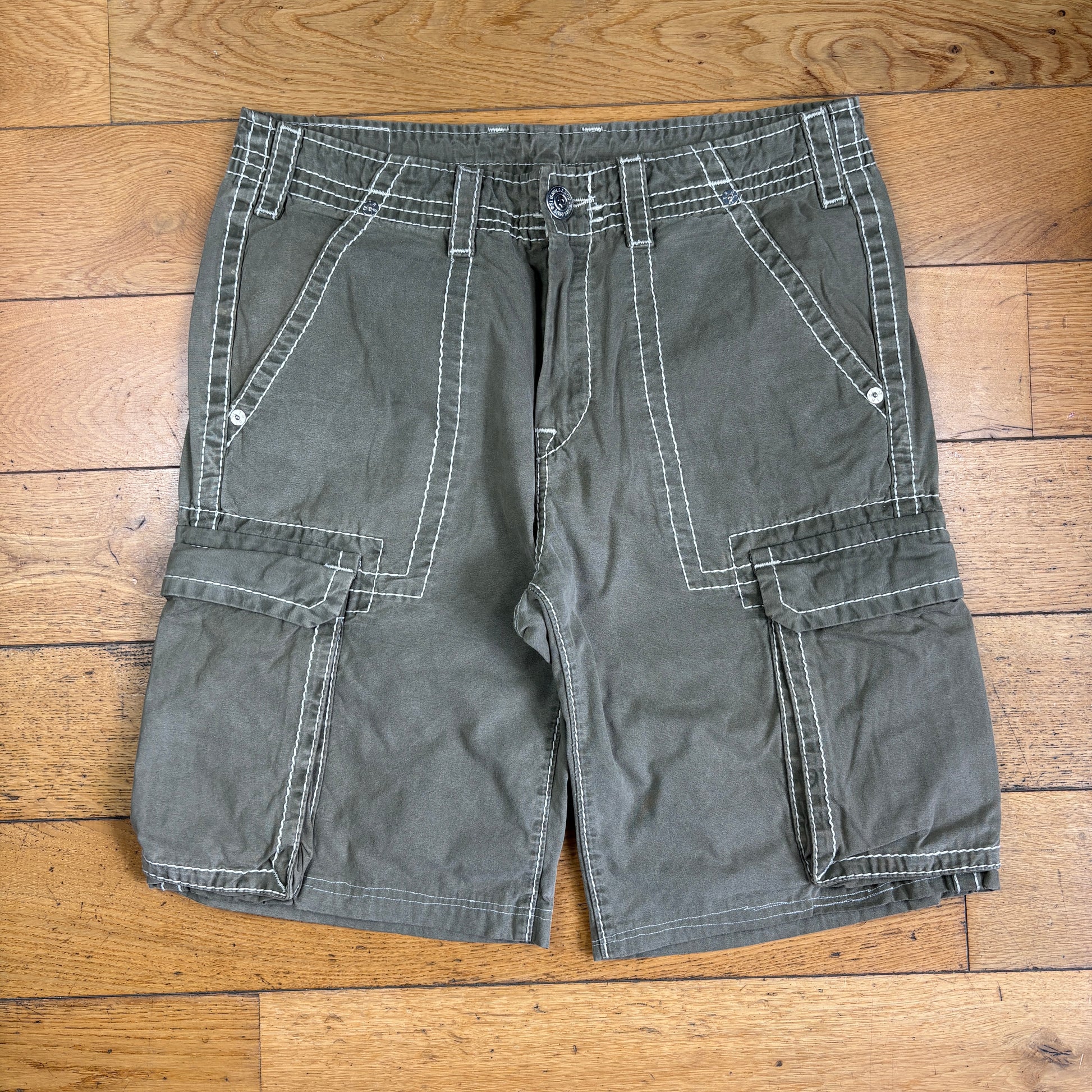Vintage True Religion Embroidered Y2K Green Khaki Cargo Shorts - 36