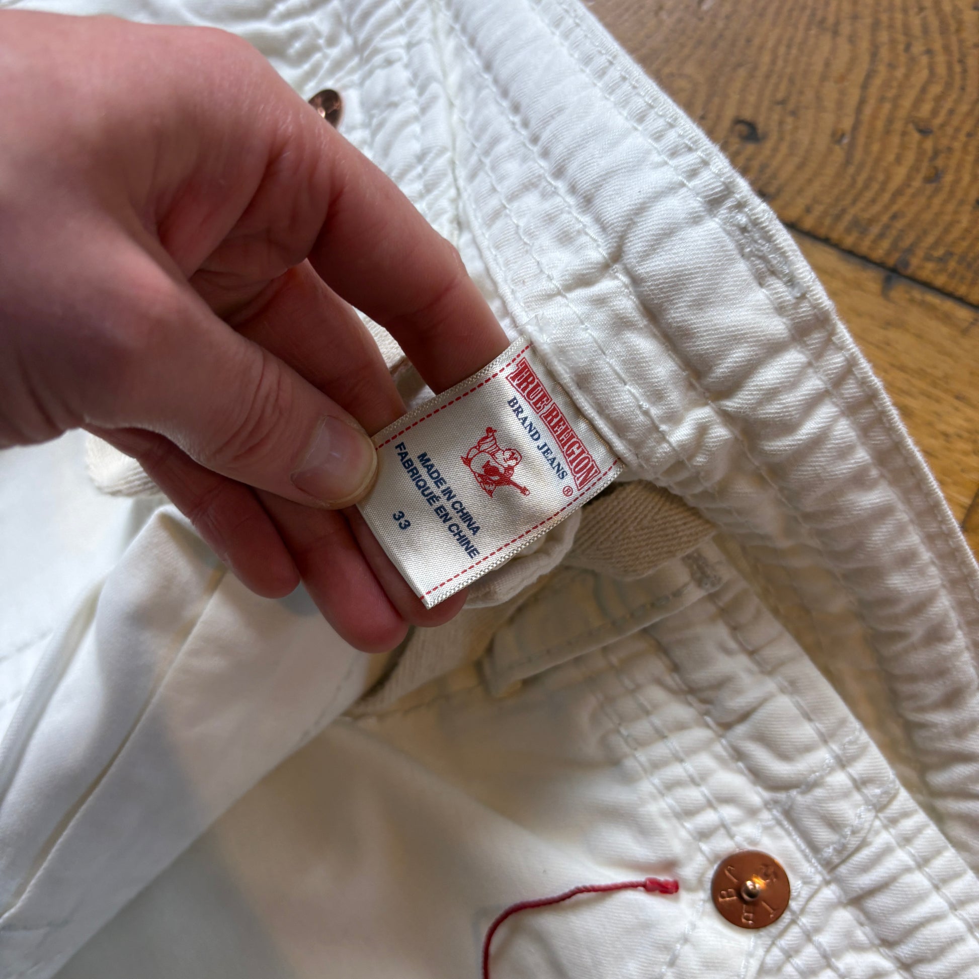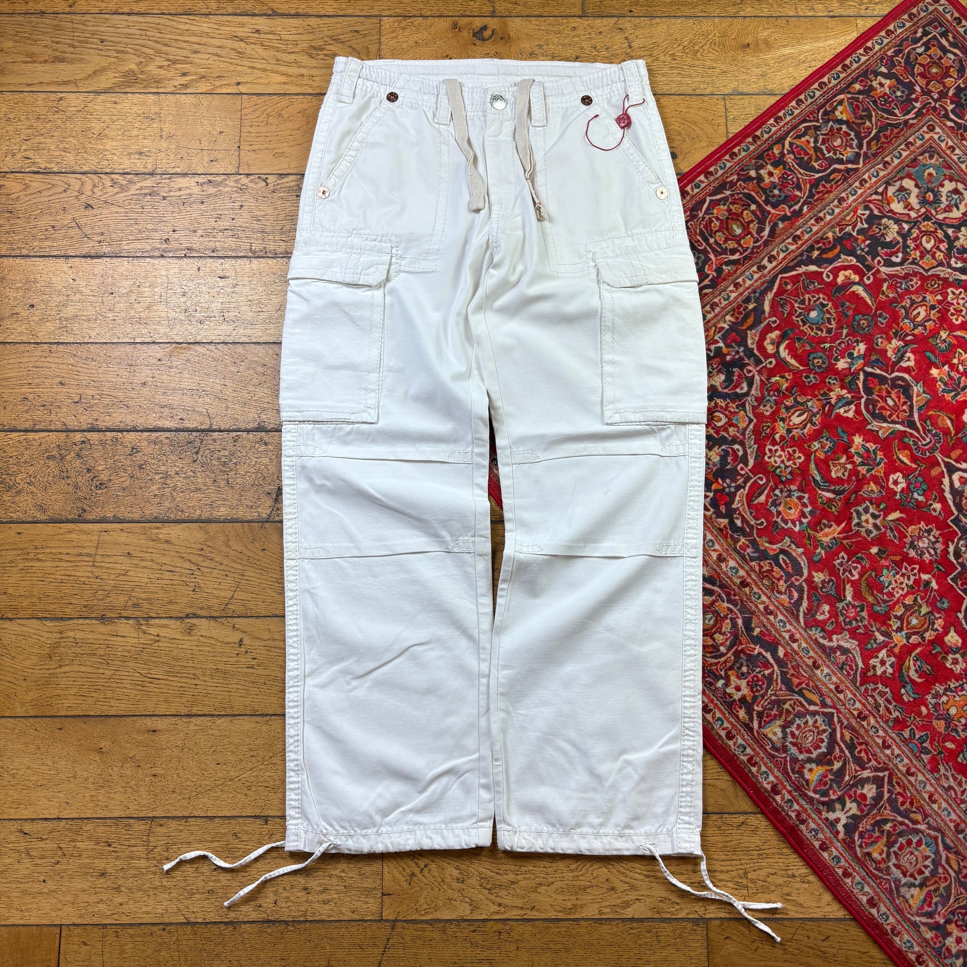 Vintage True Religion White Cargo Embroidered Y2K Hip Hop Baggy Jeans - 36