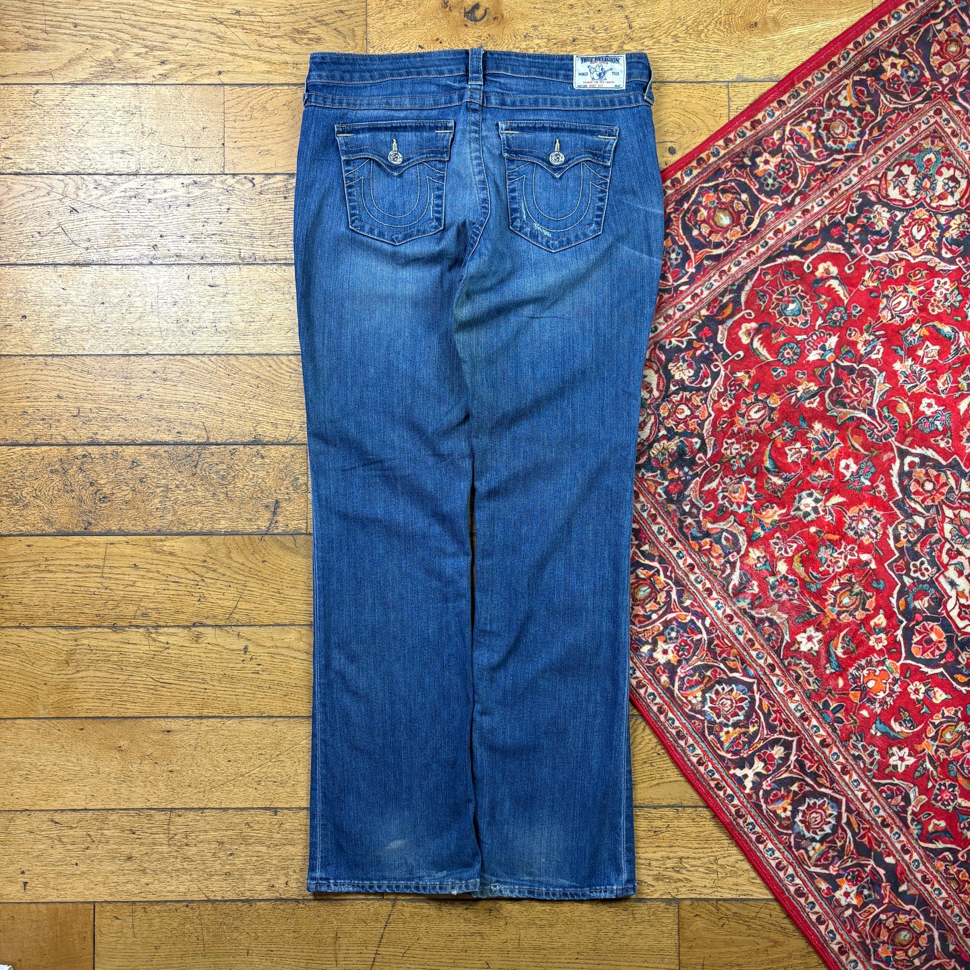 Vintage True Religion Womens Blue Embroidered Y2K Hip Hop Bootcut Jeans - Size18