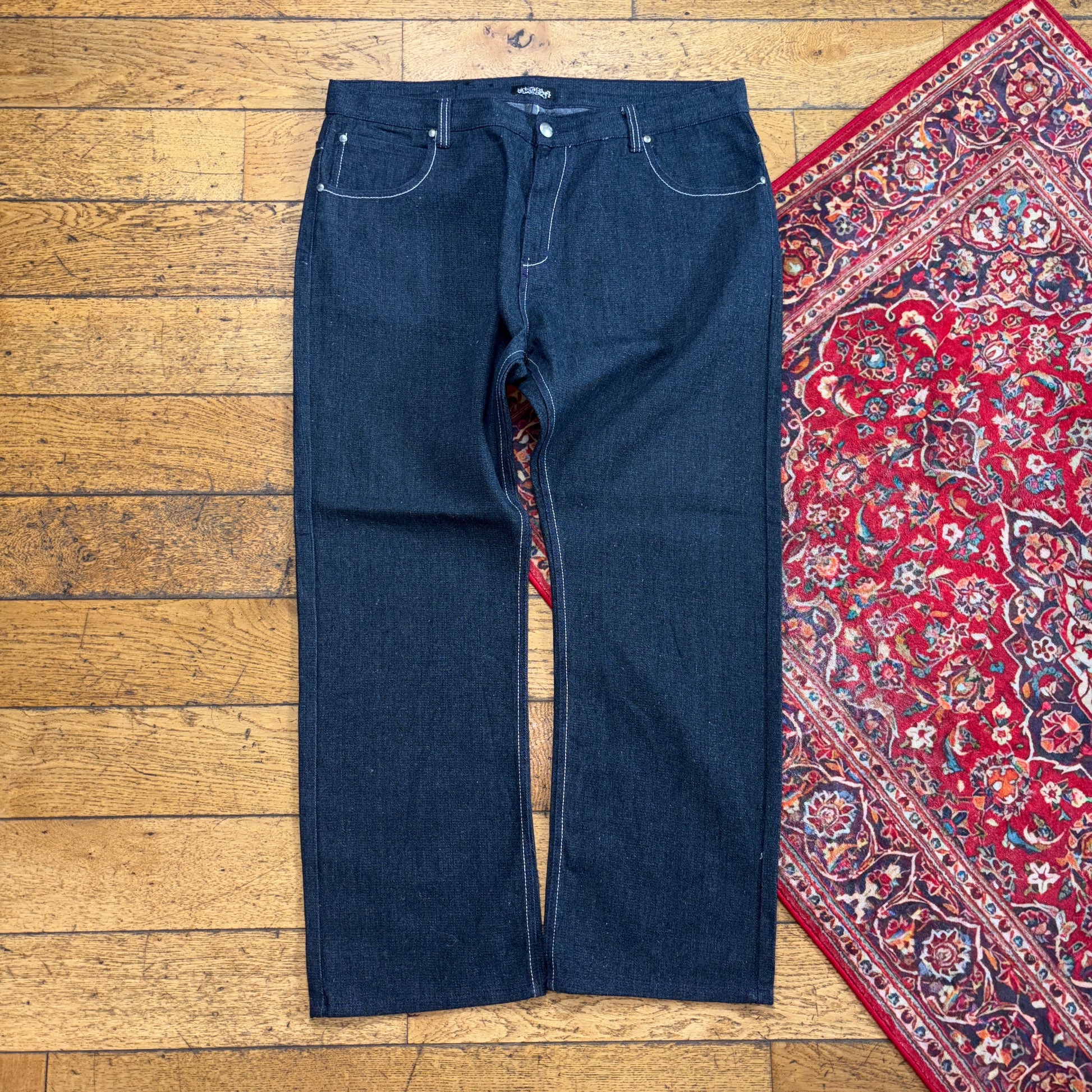 Contrast stitch true religion JNCO Coogi Southpole akademics Fubu skate rocawear embroidered denim jeans japanese denim y2k skatewear surfwear