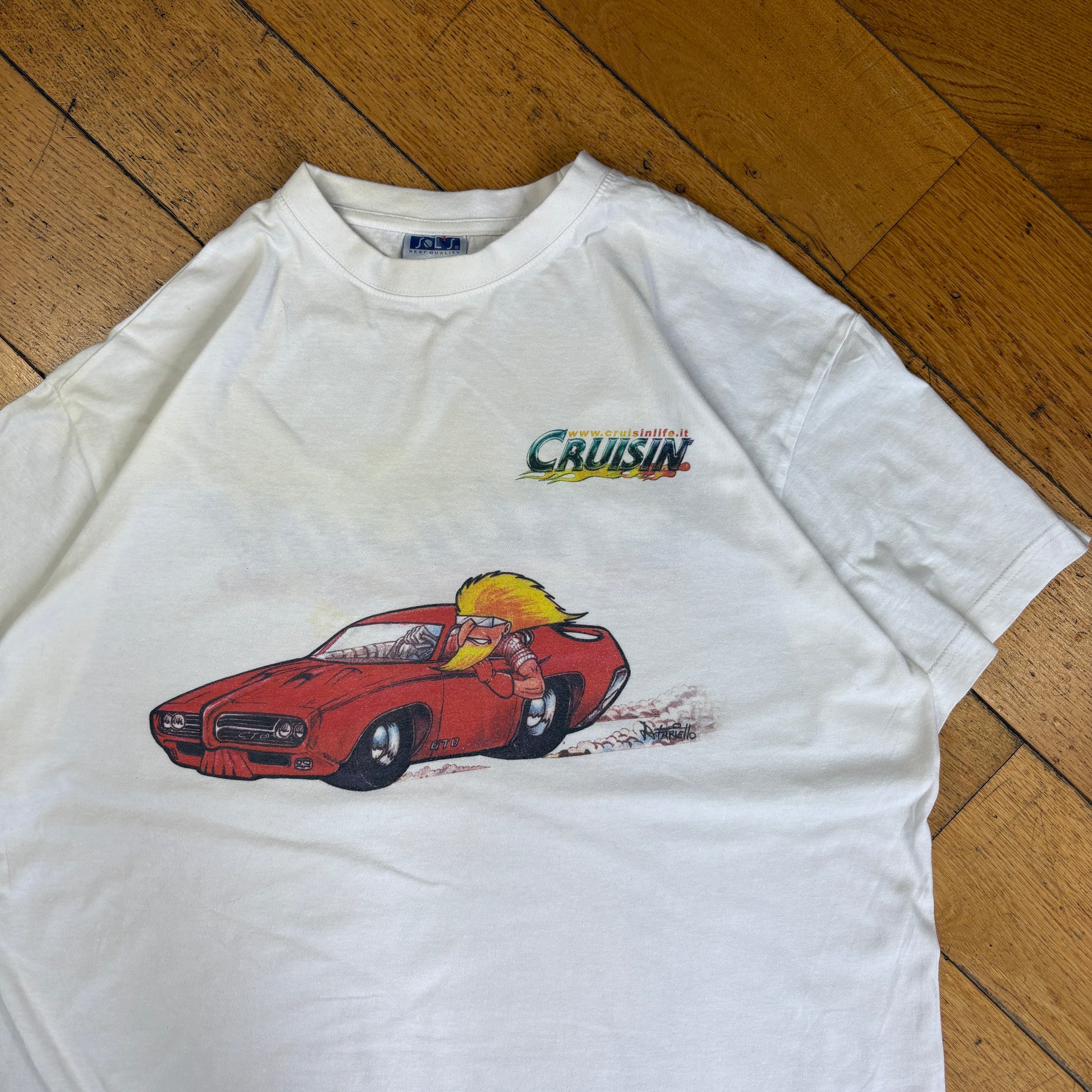Vintage White Car Cruisin Boxy Graphic T-Shirt - XL