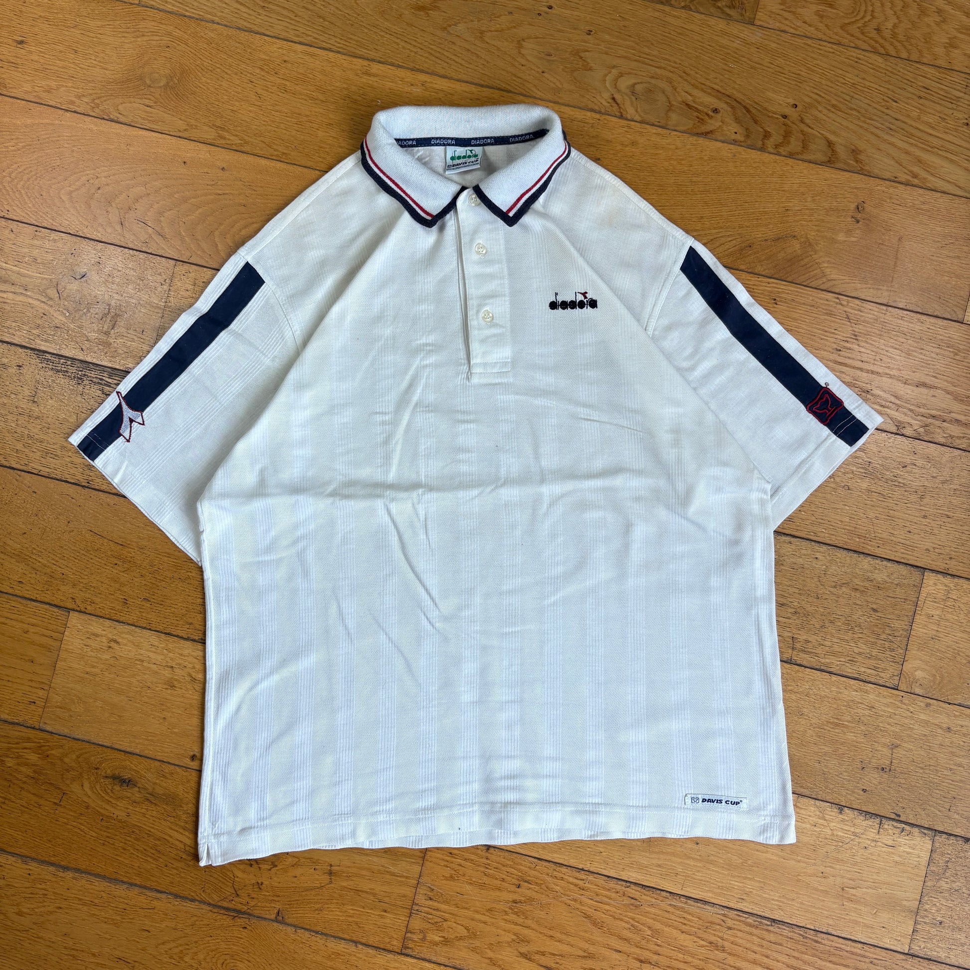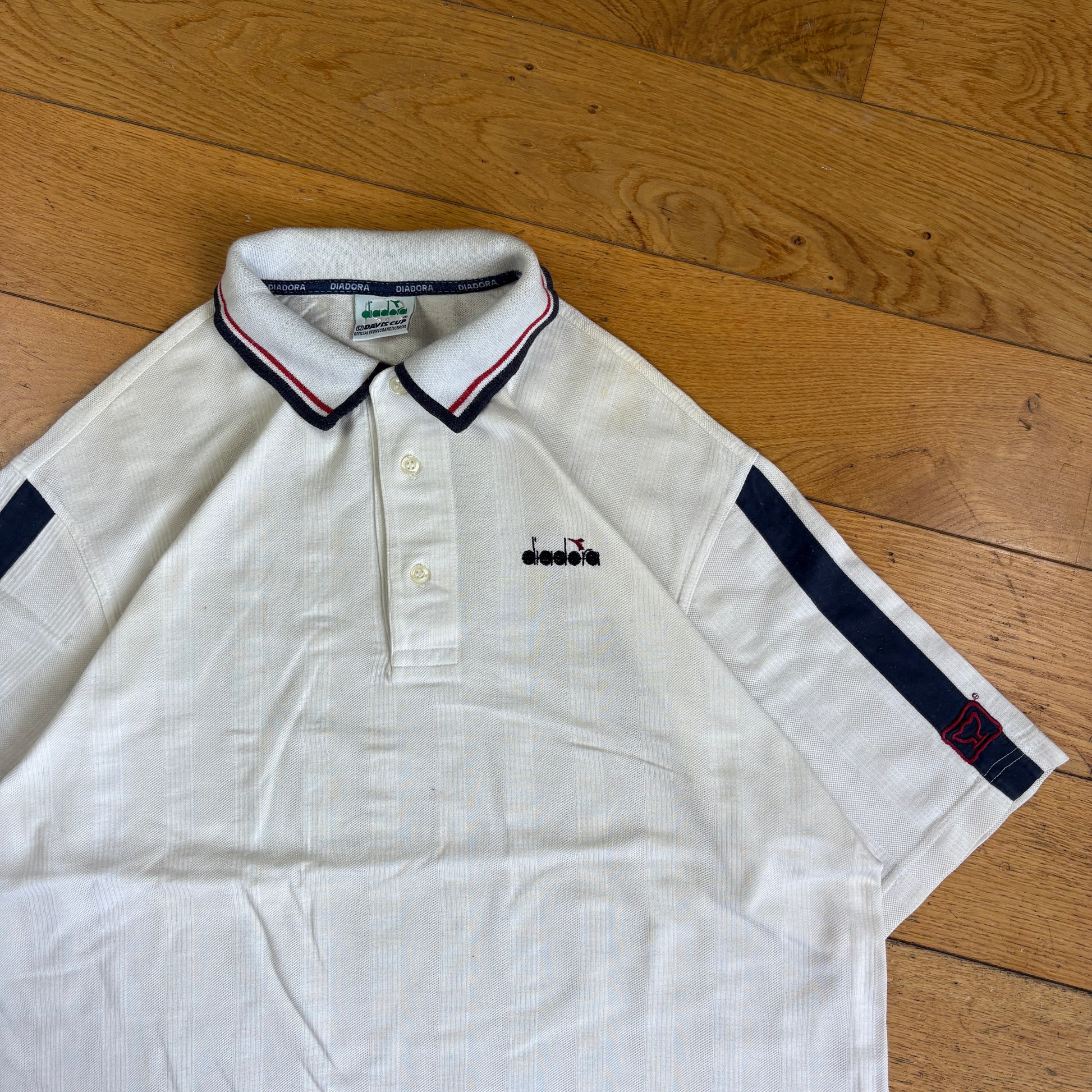 Vintage White Diadora Davis Cup Embroidered White Polo Shirt - L