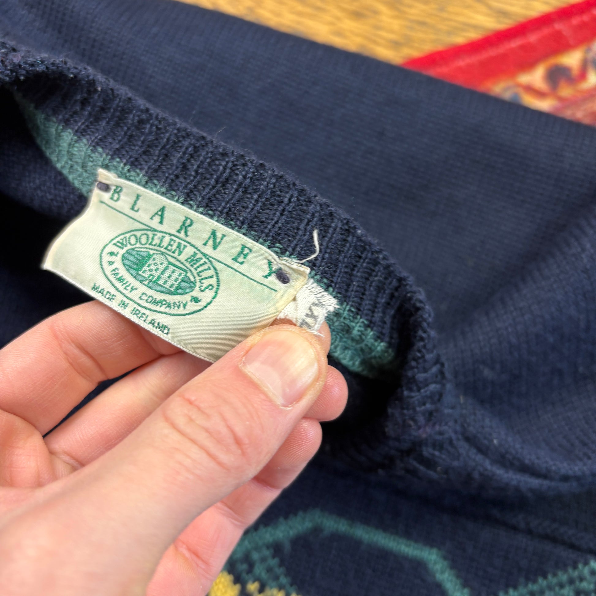 Vintage Wool Embroidered Navy Golf Chunky Knit Jumper - 2XL