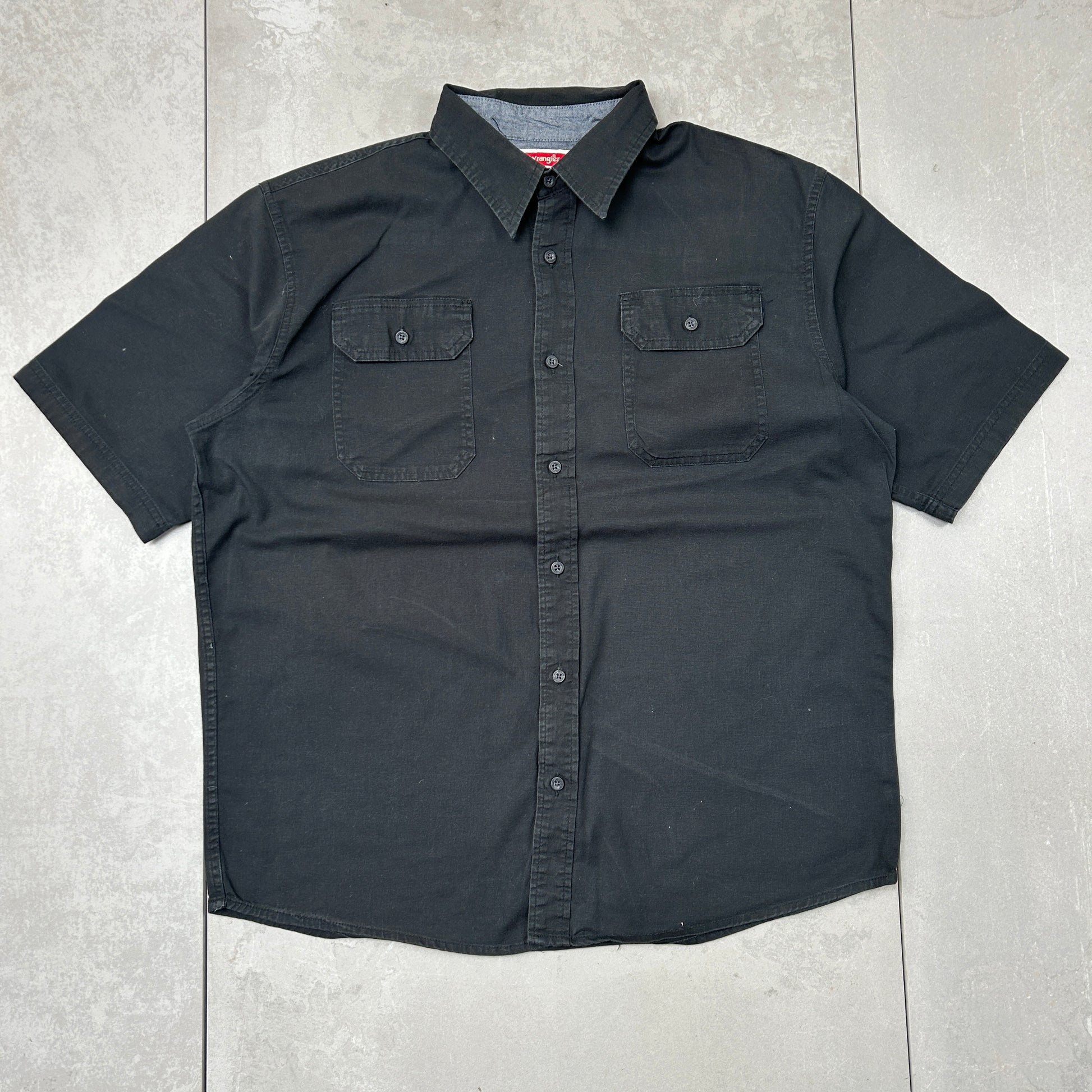 Vintage Wrangler Black Workwear Short Sleeve Cropped Shirt - L