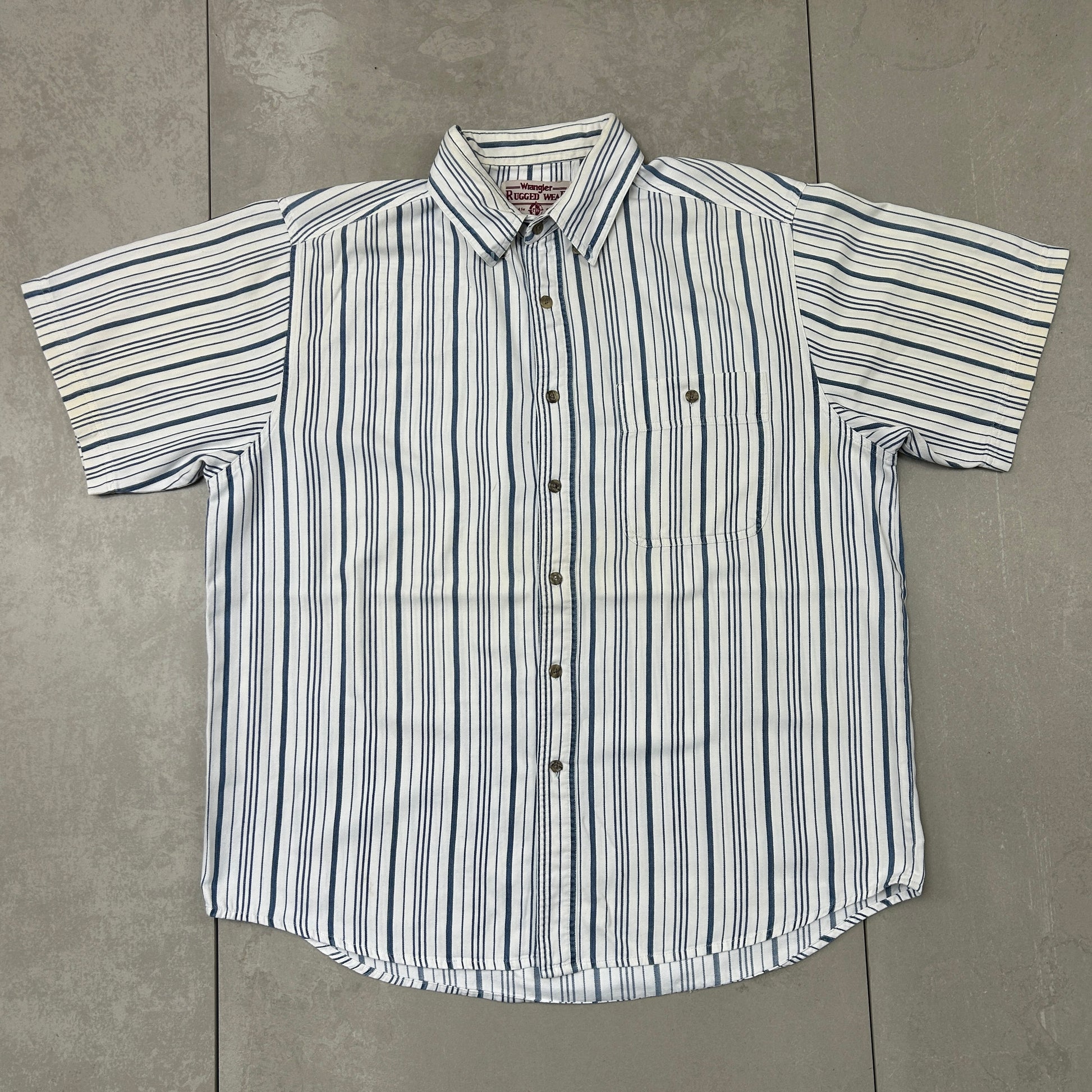 Vintage Wrangler Blue White Stripe Short Sleeve Shirt - XL