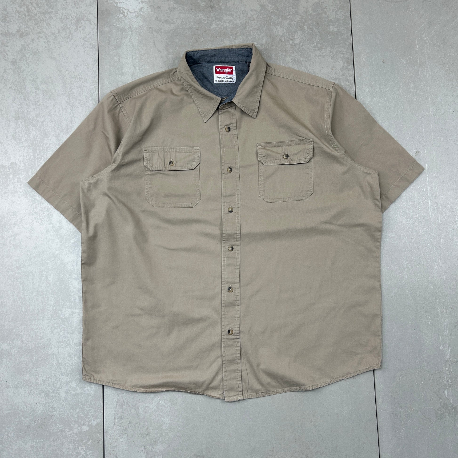 Vintage Wrangler Brown Short Sleeve Workwear Shirt - XL