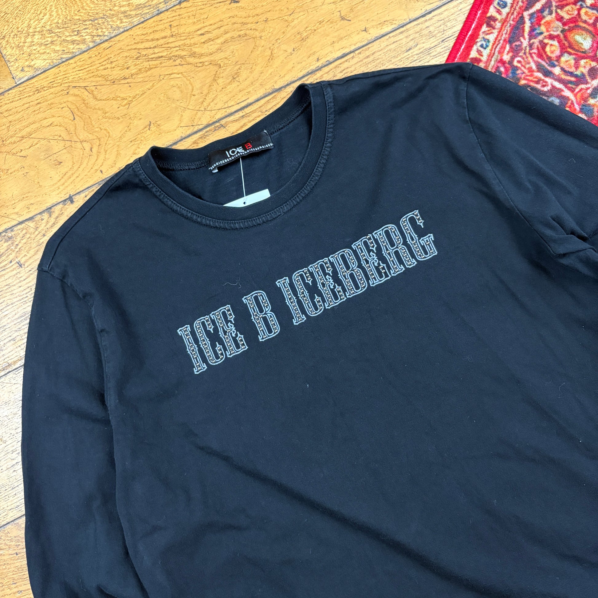 Vintage Y2K Iceberg Rhinestone Black Long Sleeve T-Shirt - Size 10
