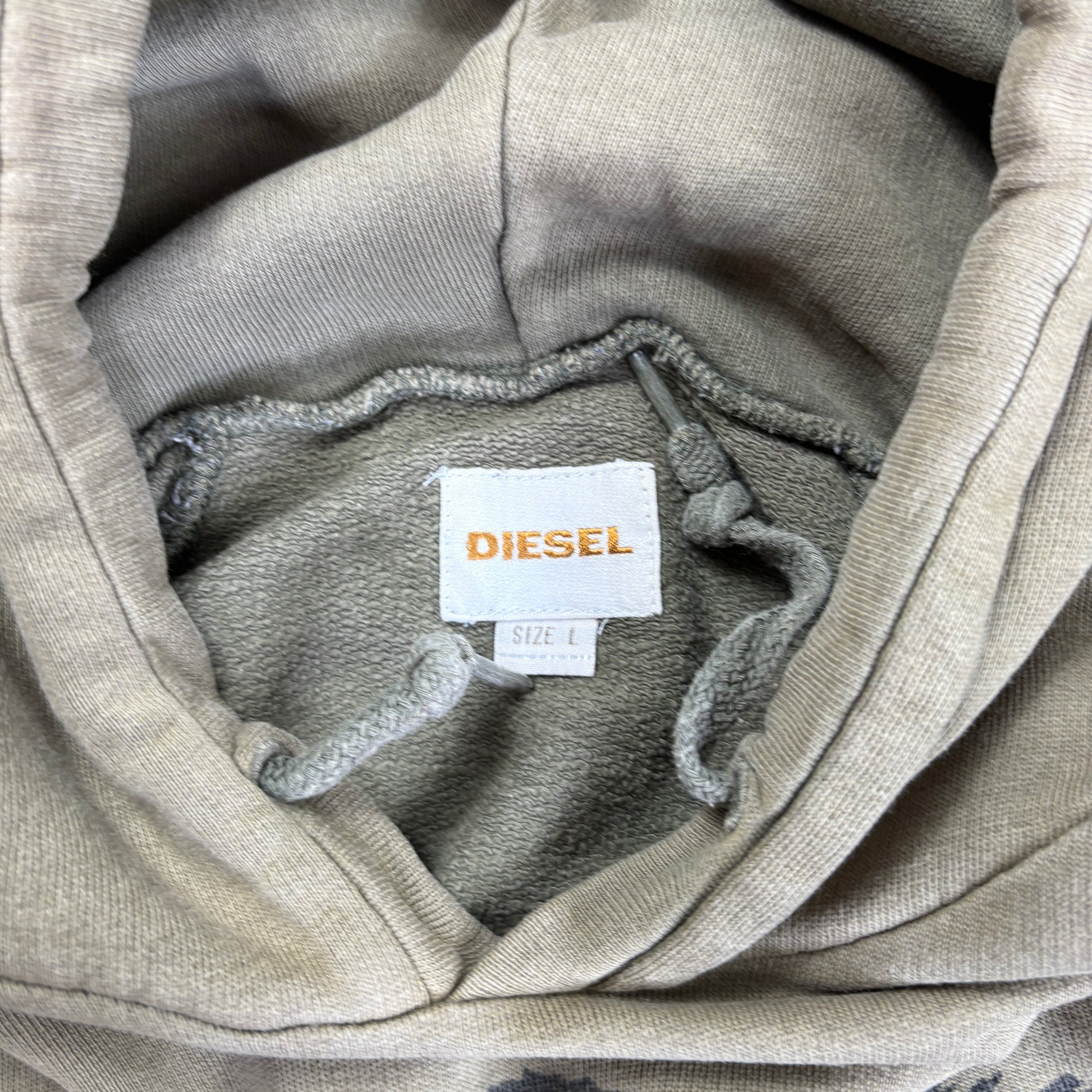 Vintage Y2K Khaki Diesel Hoodie Sweatshirt - L
