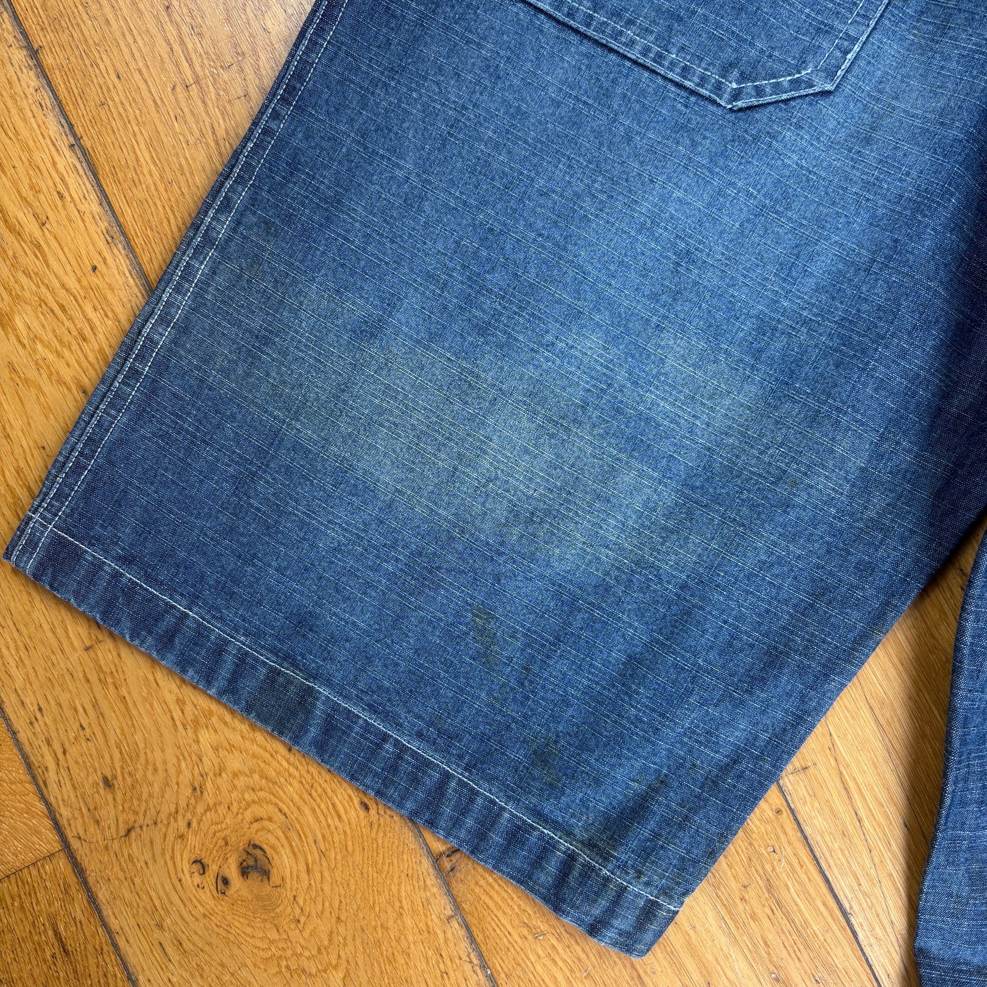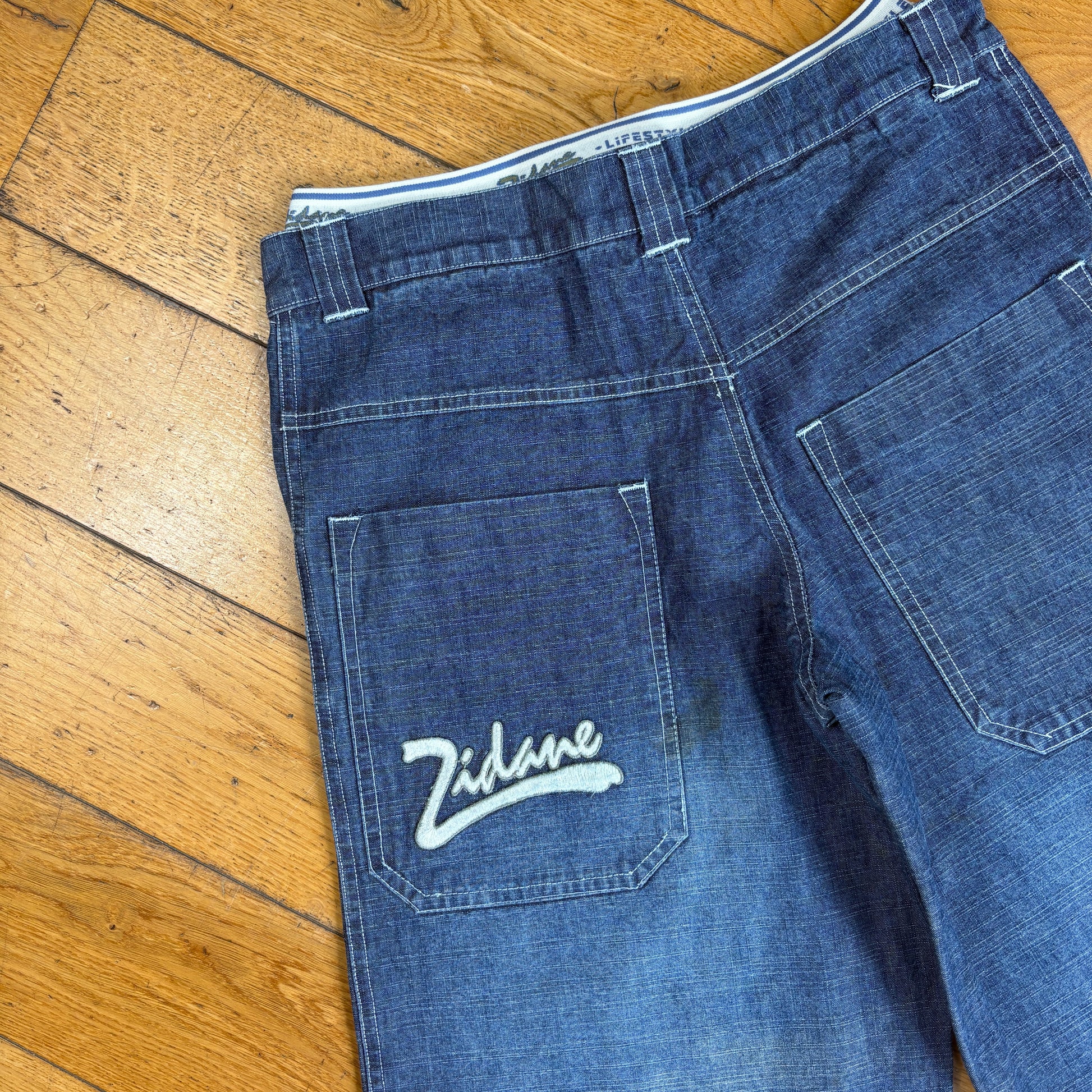 Vintage Zinedine Zidane Embroidered Hip Hop Blue Baggy Shorts Jorts - 28